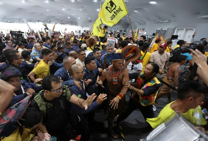 Протестующие, некоторые из которых были одеты, по-видимому, в традиционную одежду коренных народов, ворвались ко входу в здание COP30 (Conference of the Parties), скандируя лозунги и выбивая двери, а затем вступили в стычку с сотрудниками службы безопасности.