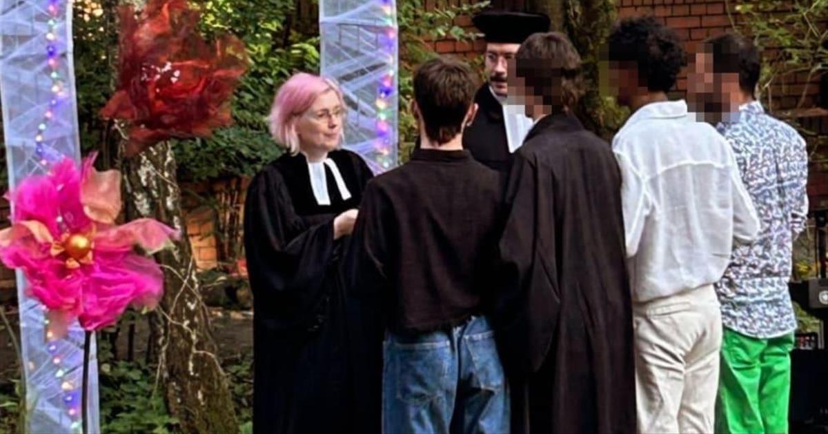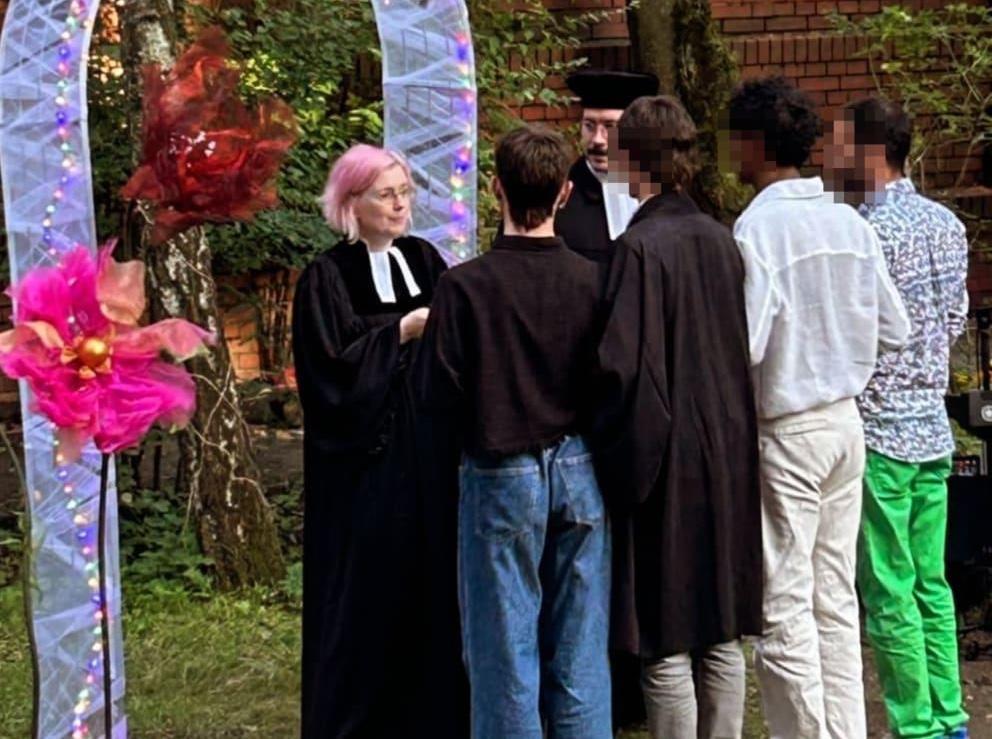 Как пишет DW, 33-летняя пасторка Евангелической церкви Берлина-Бранденбурга Лена Мюллер на днях объявила о проведении первой «поли-свадьбы» — в брак вступили сразу четыре парня. Церемония состоялась еще в конце лета в Берлине в рамках фестиваля Pop-up-Hochzeit, на который могли без предварительной записи прийти люди, желающие заключить церковный брак.