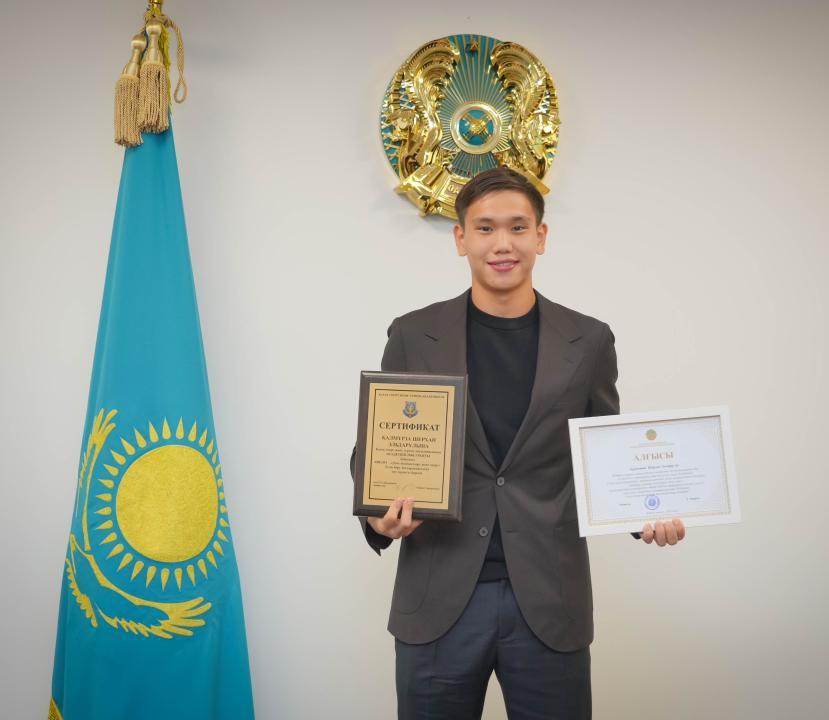 18-летнему вратарю футбольного клуба из Алматы «Кайрат» Шерхану Калмурзе, обучающемуся на платной основе в Казахской академии спорта и туризма, вручили ректорский образовательный грант.