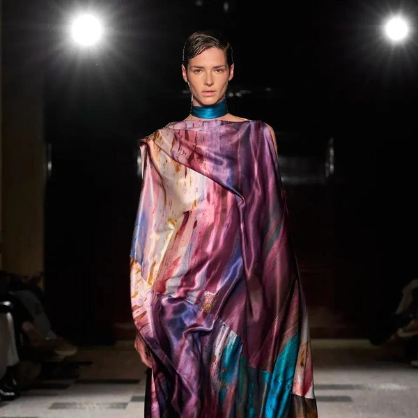 Сербка по происхождению и британка по состоянию бизнеса — Роксанда Илинчич традиционно делает ставку на силу цвета и скульптурные формы. Весной 2026 она представила коллекцию, в которой мягкие драпировки напоминали о свободе движения, а яркие оттенки — от лазурного до насыщенного терракотового — создавали эффект ожившей живописи. Дизайнер уделила повышенное внимание калейдоскопу тканей, из-за чего коллекция может показаться немного разрозненной визуально, но невероятно «залипательной» в каждой отдельной модели. Rokasanda умеет соединять архитектурность и эмоциональность.