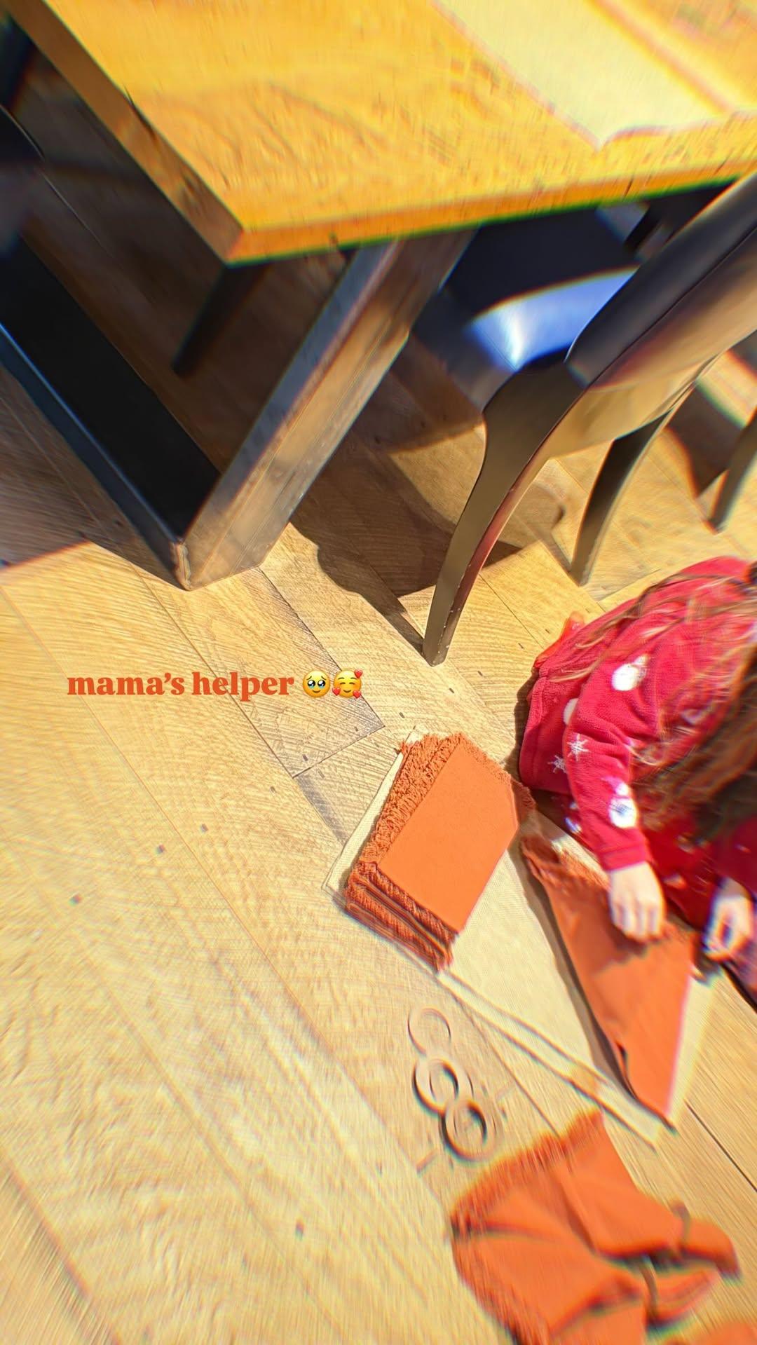 Позже Хадид опубликовала еще один кадр — уже более домашний. Мама и дочь складывали салфетки к Дню благодарения, а Кхай, в рождественской пижаме, сидела на полу и старательно помогала. «Мамин помощница», — написала Джиджи.