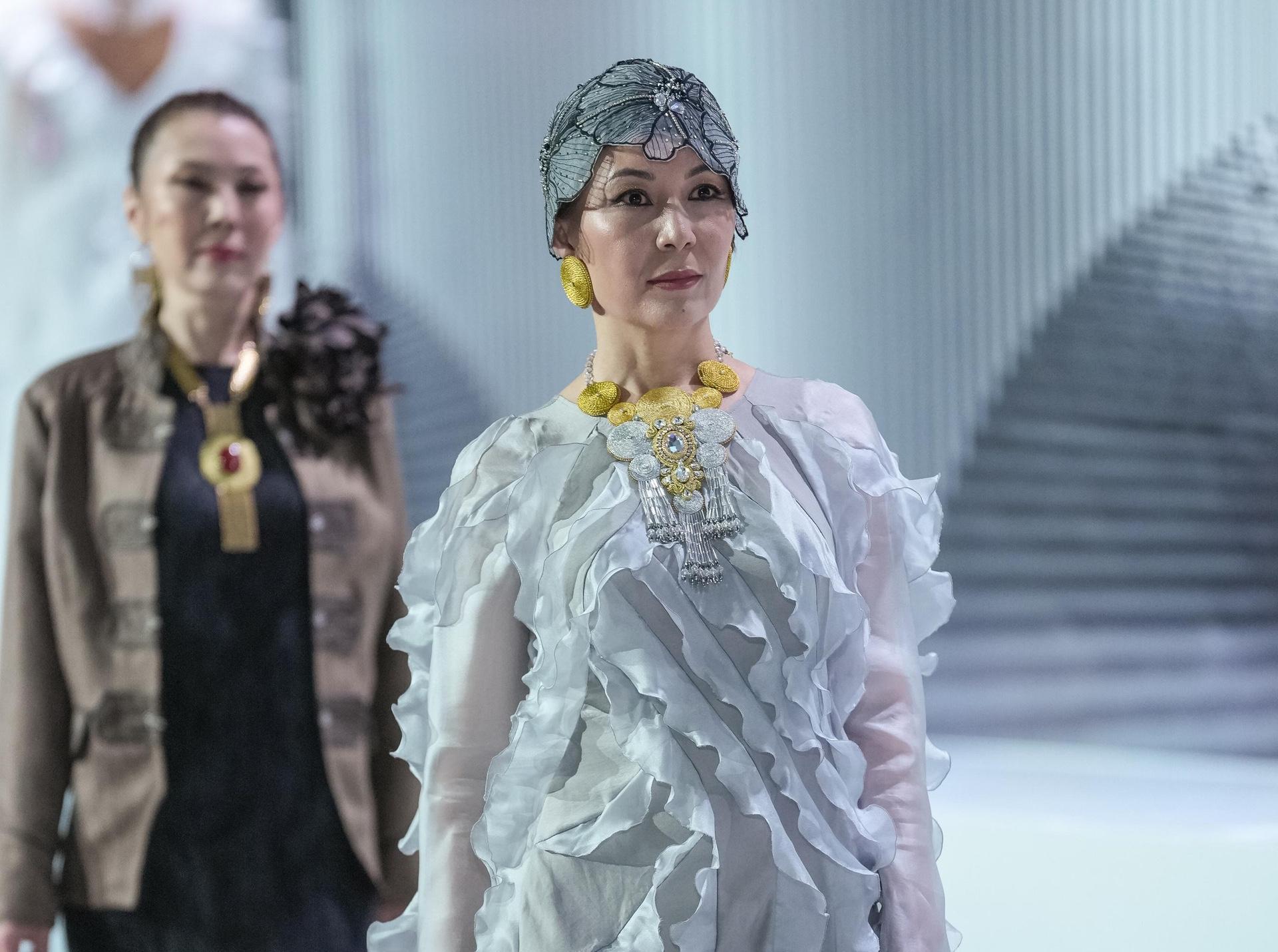 Большой тренд мировых подиумов — зрелая женственность и мода. Это касается и одежды, которая создана для женщин с опытом, но по-прежнему ориентированных на внутренний рост; и моделей — взрослых лиц на подиуме в последние годы стало заметно больше. Эту тенденцию выводит на первый план дизайнер Карлыгаш Косбаева в своей коллекции «Метаморфозы». «Она посвящена женщине, которая раскрывается через время», — говорится в официальном релизе. Это история о том, что с годами женщина расцветает, становится глубже, осознаннее и сильнее, сохраняя при этом чувственность, красоту и внутренний свет. Идея зрелой женственности находит воплощение в многоярусном белоснежном шифоне, восточных платьях с воротником-стойкой из органзы, нежных жакетах с казахским орнаментом в сочетании с длинными юбками и оригинальных аксессуарах: шляпках-блюдцах и огромных декоративных цветах вместо сумочки.