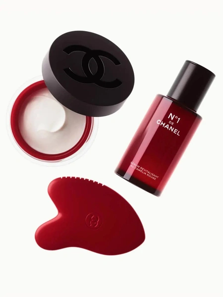 Гуаша, но с фирменной подачей Chanel. В линии Chanel N°1 Дом впервые представил массажный аксессуар. Инструмент выполнен на 85% из био-материалов и спроектирован так, чтобы работать сразу с несколькими зонами и задачами — без лишних движений и сложных техник. Эргономичная форма решает. V-образный край предназначен для скульптурирования линии челюсти и щек, ребристая сторона помогает прорабатывать поры и текстуру кожи в области носа, а заостренный кончик точечно воздействует на мелкие морщины и зоны напряжения. Аксессуар задуман для использования в паре с сывороткой и кремом N°1 de Chanel, усиливая их действие за счет массажа и стимуляции микроциркуляции.
