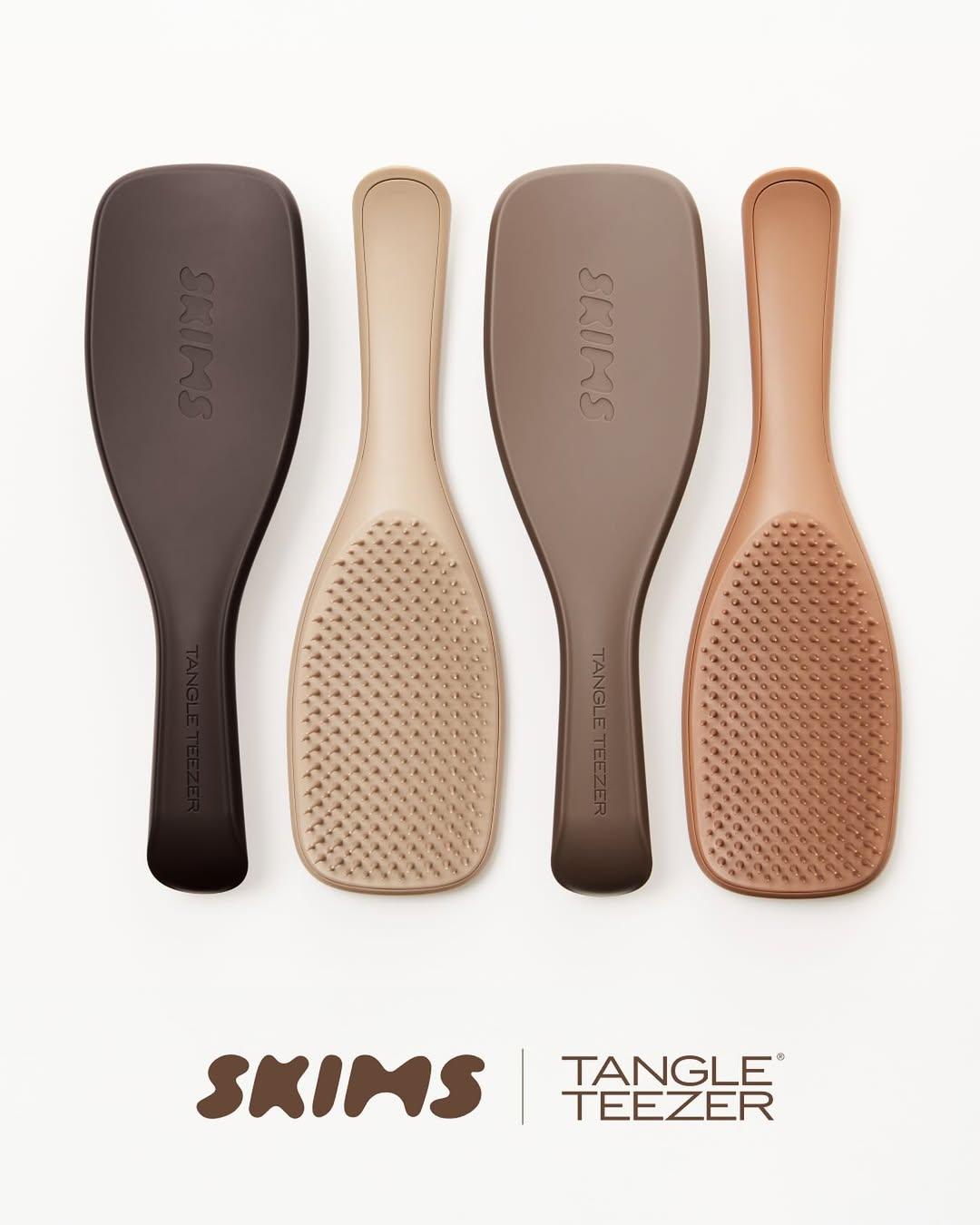 Империя Ким Кардашьян продолжает расширяться: бренд SKIMS объединился с культовым британским Tangle Teezer, чтобы выпустить лимитированную серию расчесок Ultimate Detangler в фирменной нюдовой палитре SKIMS.