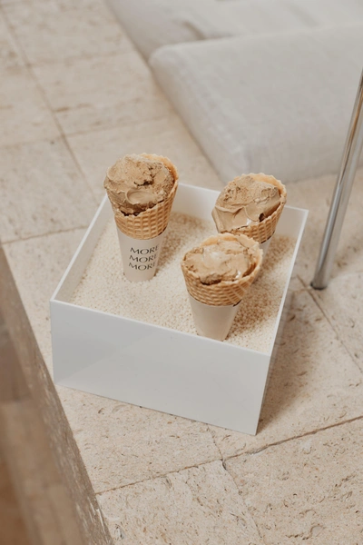 На мероприятии все было в оттенках бежевого: начиная от интерьера и заканчивая едой.