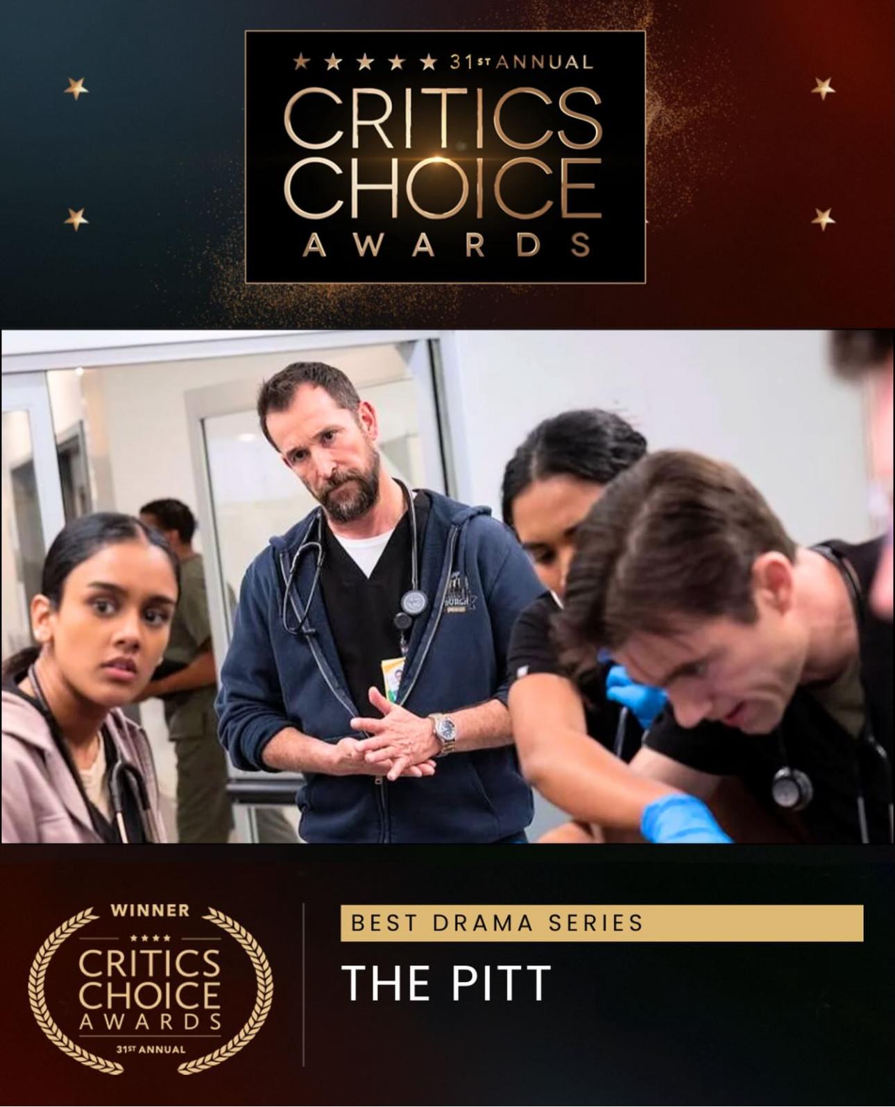 Телевизионную часть церемонии во многом определил сериал «Питт». Проект, рассказывающий о повседневной жизни врачей больницы в Питтсбурге, получил главный приз как лучший драматический сериал года, а исполнитель главной роли Ноа Уайли был признан лучшим актером в драматическом сериале. Он опередил Стерлинга К. Брауна («Рай»), Диего Луну («Андор»), Марка Руффало («Задание»), Адама Скотта («Разделение») и Билли Боба Торнтона («Лэндмен»). В своей речи Уайли напомнил, что еще несколько лет назад не мог представить себя в одном ряду с актерами такого уровня, и поблагодарил коллег за доверие и профессиональное уважение.