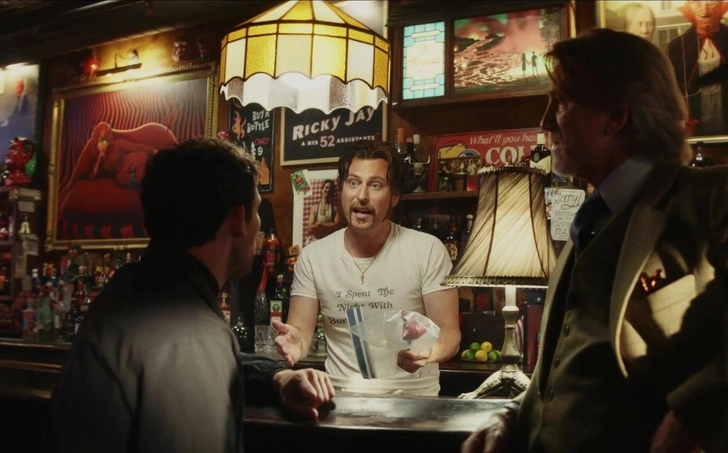 Еще одно «подмигивание» Райана Джонса второй части франшизы связано с фигурой актера Джереми Реннера. В «Стеклянной луковице» есть забавный, почти мета-жест: на бутылках острого соуса мелькает вымышленный бренд «Renning Hot!» с улыбающимся лицом Джереми Реннера. Он послужил визуальным гэгом о том, как культ знаменитостей превращается в потребительские «бренды» — от NFT до соусов, которым приписывают статус и ценность, не имея за ними ничего, кроме узнаваемости лица. И что мы видим? В «Достать ножи 3» — «Воскрешение покойника» уже сам Реннер официально появляется в актерском составе! В роли брошенного женой доктора Нэта Шарпа.