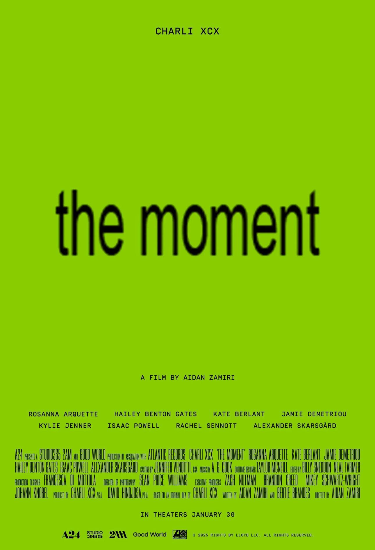 Фильм «Момент», который выйдет в начале 2026 года, позиционируется как «мета-мокьюментари» (это художественный фильм, стилизованный под документальный) о поп-звезде на пике успеха. Charli XCX играет вымышленную версию себя — артистку, переживающей последствия феномена своего альбома Brat. Уже в первом тизере становится понятно, что авторы не пытаются создать иллюзию традиционного документального кино. Напротив, фильм открыто играет с форматами и намеренно преувеличивает напряжение вокруг звезды, превращая ее повседневность в гротескный спектакль. Камера как будто преследует героиню, фиксируя моменты подготовки к туру, внутренние кризисы и хаос индустрии, где каждый вздох превращается в контент, а любое сомнение моментально обсуждается всей командой.