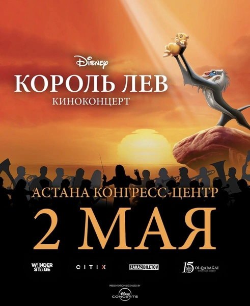 2 мая в Astana Congress Center состоится официальный киноконцерт Disney «Король Лев» — фильм покажут под аккомпанемент живого симфонического оркестра, хора и вокалистов. Организаторы — компания Wonderstage — сейчас в активной подготовке: на сцену выйдут более 100 артистов — симфонический оркестр, хор и солисты. Главная техническая задача таких показов — точная синхронизация живого исполнения с картинкой на экране в режиме реального времени: каждая реплика, каждый музыкальный акцент должны совпадать с происходящим в кадре.