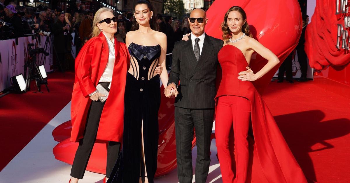 После премьеры в Лондонской национальной галерее прошел гала-вечер A Night With Runway, на котором Хэтэуэй была в кастомном платье Louis Vuitton, Мерил Стрип — в Richard Quinn, а Эмили Блант выбрала наряд Dior из дебютной кутюрной коллекции Джонатана Андерсона, туфли Jimmy Choo, украшения Monica Vinader и колготки Wolford.