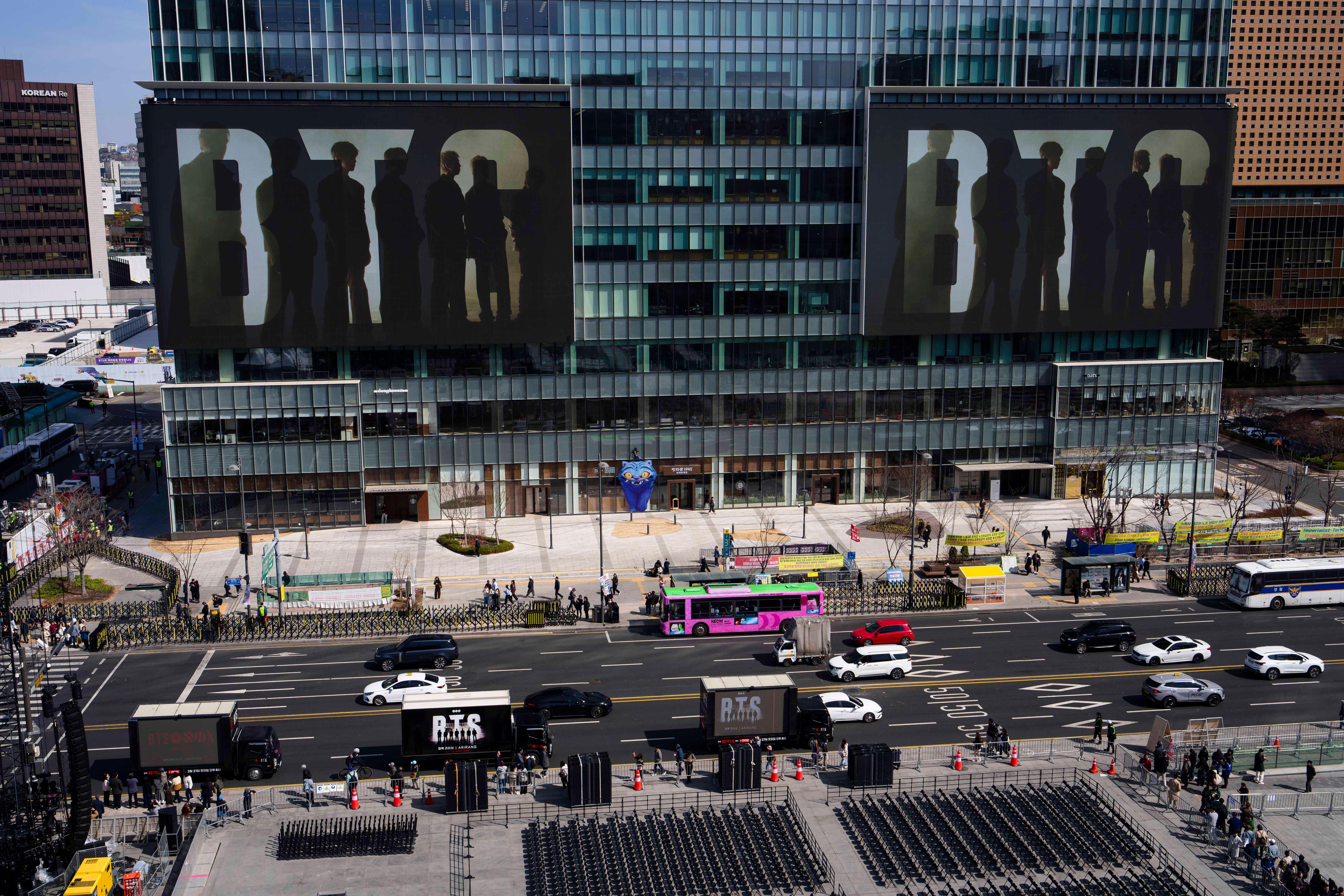 Масштаб возвращения BTS сложно переоценить. Вот лишь несколько фактов. В субботу, 21 марта, группа дает бесплатный концерт на своей родине, в Сеуле. Более 250 тысяч человек увидят шоу в живую, а Netflix будет демонстрировать прямую трансляцию в 190 странах. И это только старт мирового тура, включающего 82 выступления и затянувшегося вплоть до 2027 года. Прогнозируемая выручка от турне BTS превышает миллиард долларов, а некоторые аналитики называют цифры, сопоставимые с двумя миллиардами тура Тейлор Свифт. Президент Мексики Клаудиа Шейнбаум лично написала южнокорейскому правительству с просьбой добавить шоу для ее страны. (Добавили сразу три даты!) Пять миллионов предварительных сохранений на Spotify — рекорд для всей k-pop индустрии. Акции лейбла HYBE, просевшего почти на 37,5% по операционной прибыли за время военной службы всех семи участников, резко пошли вверх.