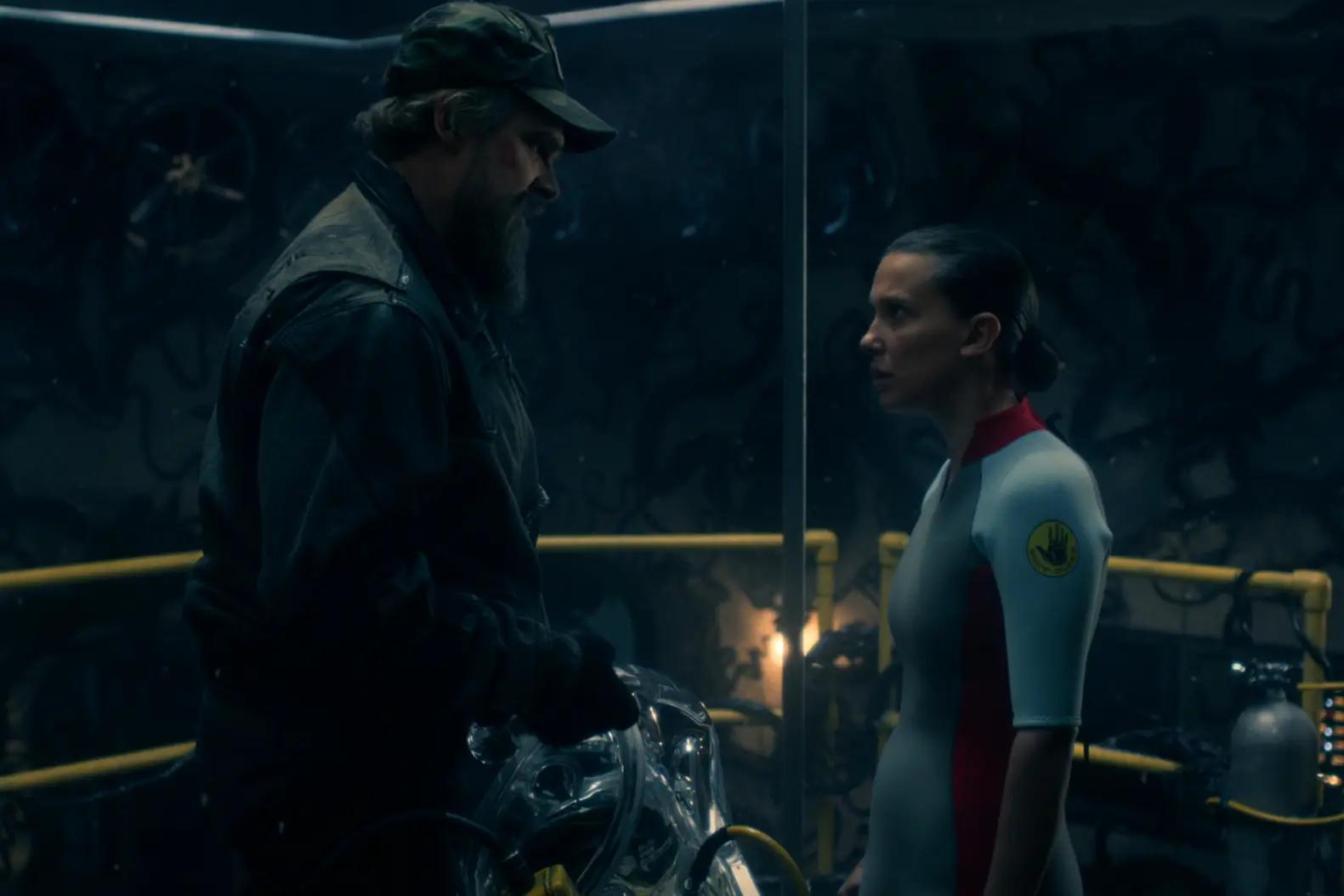 Первая сцена. Перед тем как Изнанка рушится, Хоппер произносит сильную речь, просит Одиннадцать пообещать, что она будет бороться за жизнь и свое будущее. Позже Одиннадцать отвечает ему своим монологом и просит Хоппера довериться ей — что она сделает правильный выбор для себя. В чем смысл этих моментов и почему вам было важно, чтобы они отражали друг друга? «Речь Хоппера в каком-то смысле была способом сформулировать то, что мы и многие сценаристы чувствовали, когда обсуждали линию Одиннадцать, — говорит Росс Даффер. — За эти годы Оди прошла через слишком многое, и нам хотелось, чтобы кто-то проговорил это вслух, когда она пытается принять решение о том, какой может быть ее жизнь, если она вообще будет, после всего происходящего — если им удастся победить Векну. Хоппер был для нее отличной отцовской фигурой, но он слишком опекающий, потому что он уже потерял дочь и ужасно боится повторения. В результате он не дает ей принимать собственные решения и по-настоящему взрослеть». «Во многом финал сериала — про взросление, — добавляет брат Мэтт. — Это завершение длинной истории взросления, а часть взросления — отделиться от родителей и начать принимать собственные решения. В этот момент Одиннадцать достигает этой точки, а Хоппер понимает, что ему нужно отпустить».