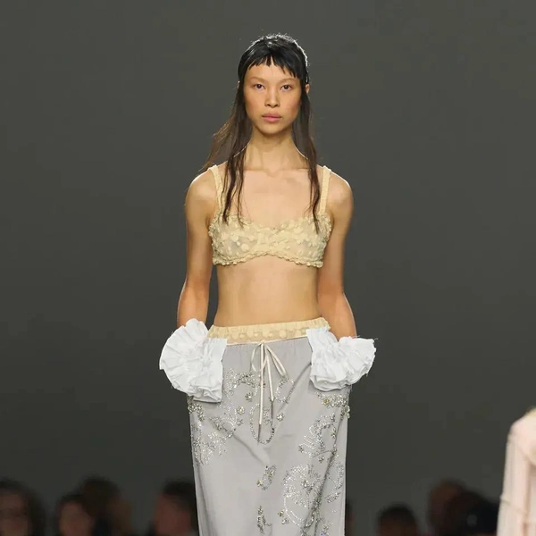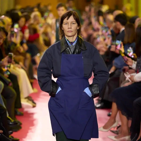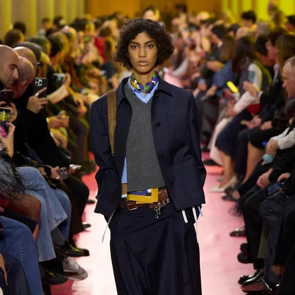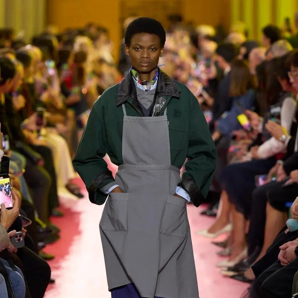 Всех гостей шоу Miu Miu пригласили в импровизированный цех: стены и окна привычного для бренда Дворца Йена были задрапированы желтыми ПВХ-завесами, напоминающими входы в складские или холодильные помещения. Вместо привычных кресел гостям предложили занять места за столами — точнее, на столах. Разноцветные поверхности превращались в своеобразные подиумы, на которые можно было сесть, свесив ноги. С первых минут было ясно: у Миуччи Прады и стилистки Лотты Волковой — игривое настроение. В своем «младшем» бренде дизайнер вновь обращается к теме фартука, превращая его из утилитарного атрибута в модный символ. От грубых рабочих моделей, как у сварщиков, до детских и наивных, словно из детского сада — фартук становится знаком идентичности и статусности. Предмет, когда-то принадлежащий работницам швейных цехов, горничным и садовникам, теперь заявляет о принадлежности к модному сообществу. Это размышление о самоидентичности, социальных ролях и способности женщины оставаться собой без внешнего одобрения. В интерпретации Miu Miu кожаный фартук становится одновременно броней и украшением, защитой и проявлением индивидуальности. Этот образ балансирует между честностью и искусственностью, доказывая, что истинная роскошь кроется не в материале, а в смелости говорить о сложных и противоречивых темах.