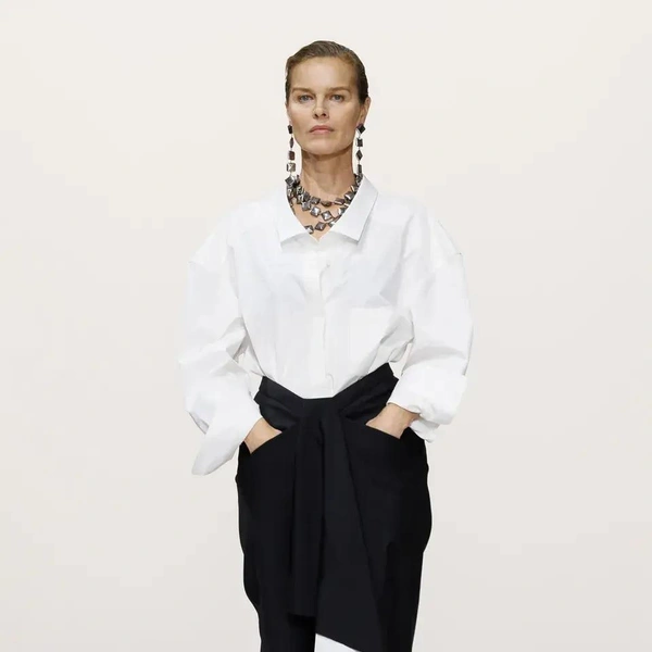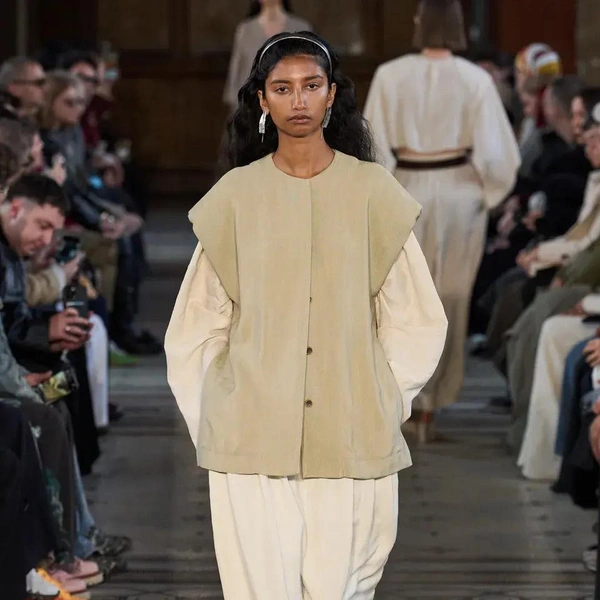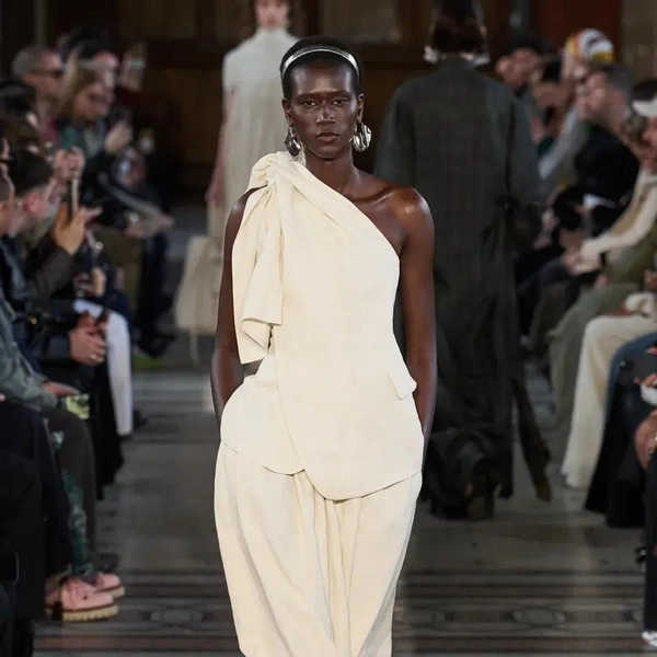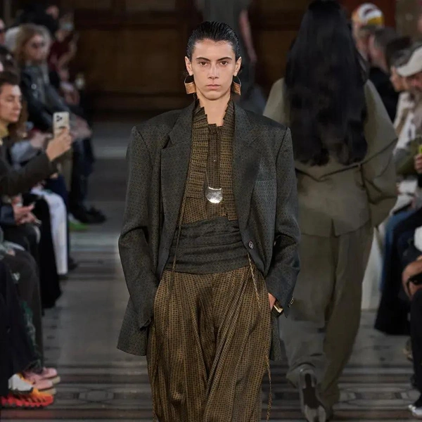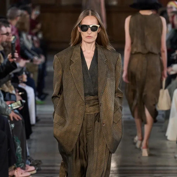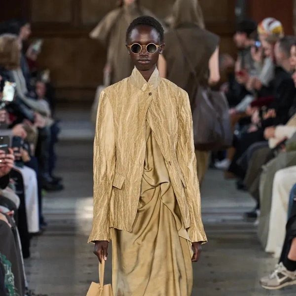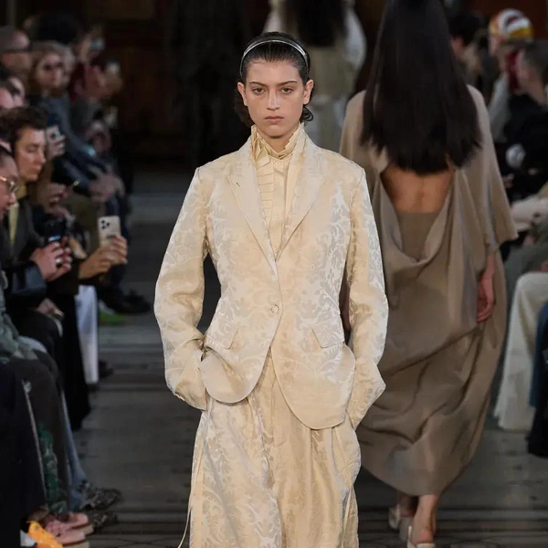 Шоу, которые многие медиа и работники индустрии «преступно» оставили без должного внимания. Поэтому мы бы хотели рассказать о нем сразу следом за гигантами. Шоу Uma Wang, весна-лето 2026, это без преувеличения один из лучших показов как в биографии самой Умы, так и всей нынешней парижской Недели! Со всех точек зрения: от локации и кастинга до тканей и кроя. В новом сезоне Uma Wang установили подиум в намоленном месте — парижском Музее искусств и ремесел, расположенном в здании бывшего монастыря бенедиктинцев Сен-Мартен-де-Шан. Скрипучий деревянный пол, «строгая» лестница, величественные своды отлично гармонировали с богатыми винтажными тканями на подиуме. Китайский дизайнер продолжает диалог с эпохой Возрождения, превращая вдохновение классическим искусством в современную моду. В этот раз источником вдохновения стали женские скульптуры. Плавные драпировки, словно подсмотренные в мраморе, оживают в тканях — льне, шелке, хлопке. Жаккард, вывернутый наизнанку, с крошечным цветочным принтом напоминает след времени на камне. Свободные линии, приглушенные тона песка, карамели и теплого шоколада создают атмосферу летнего покоя. Внимание к деталям проявляется в каждом элементе — воротнике, переходящем в изящное декольте, и асимметричной драпировке, объединяющей пиджак и блузу в единое целое. Отдельного внимания заслуживает кастинг — у Uma Wang, пожалуй, самый зрелый и выразительный состав моделей. Женщины 40+, 50+, 60+ — бесконечно элегантные, статные и завораживающие. Браво!