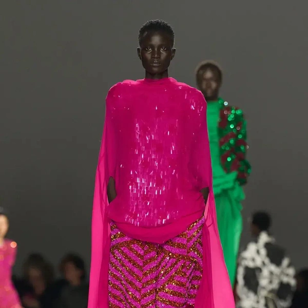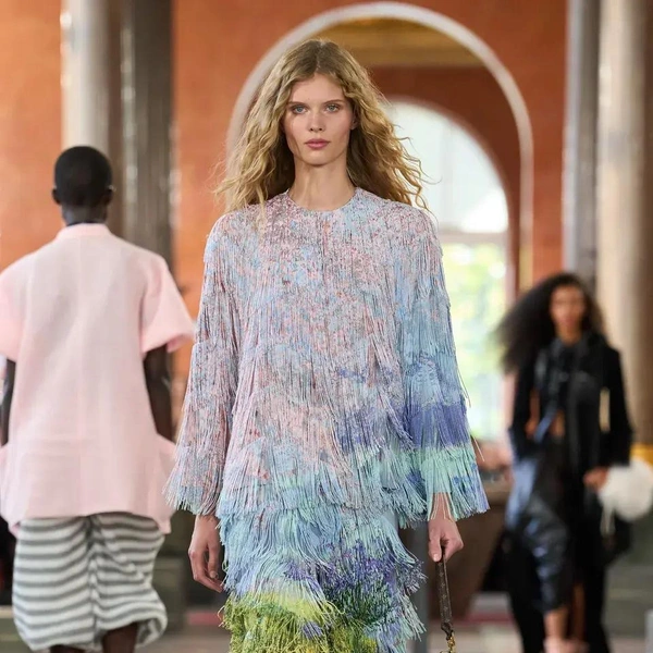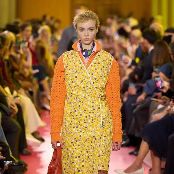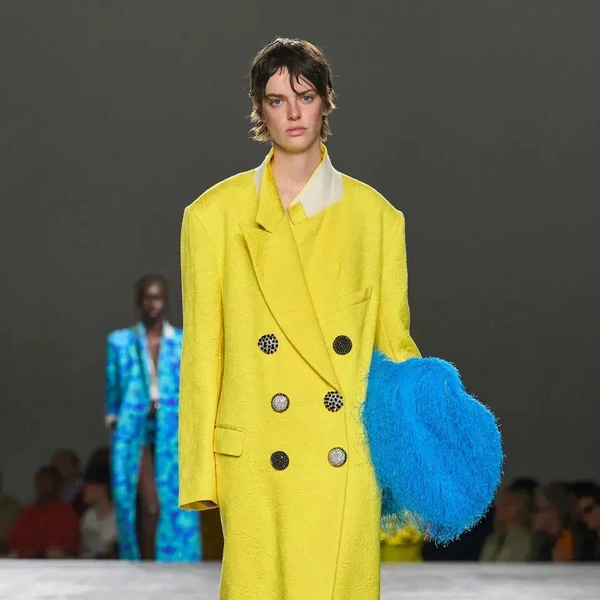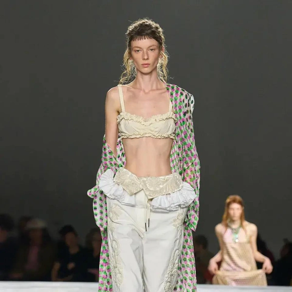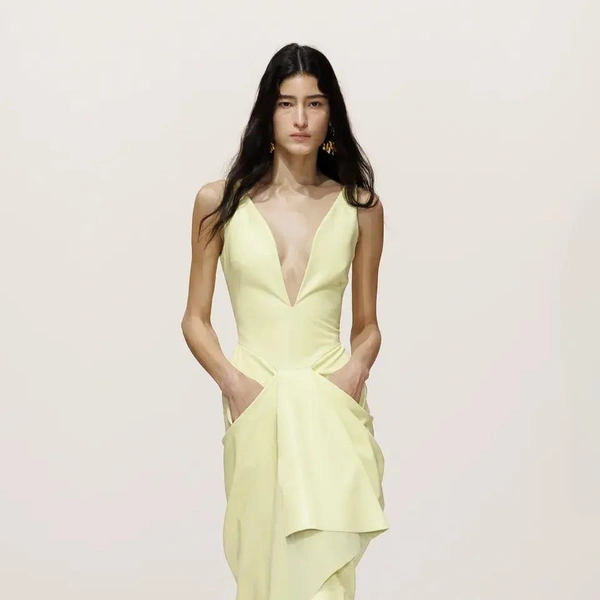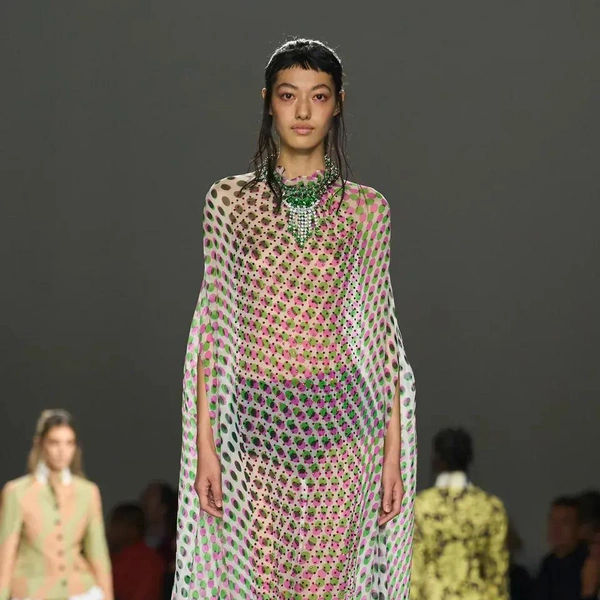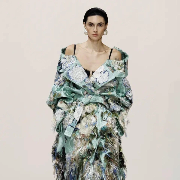 Не дебютант, но все еще новичок «на испытательном сроке» Джулиан Клауснер вновь доказывает, что великое наследие своего наставника — Дриса Ван Нотена — оказалось в заботливых руках. В коллекции весна-лето 2026 он вновь не ищет легких путей и «безопасной» моды. Эти вещи никак не назовешь базовыми или универсальными, это вещи-сокровища, которые моментально обращают на себя внимание. Яркие оттенки лайма, фуксии, томатного, лазурного и кораллового сменяют друг друга, создавая ощущение движения даже в статике. Ткани работают как поверхность экрана: переливающийся жаккард, вышивка пайетками и мерцающие шелка создают иллюзию изменяющегося рисунка в зависимости от угла взгляда. В этой коллекции принт — это не фон, а сюжет.