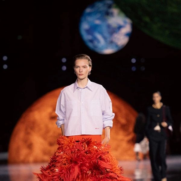 Последний показ в календаре Недели моды в Париже — и первый в нашем списке лучших из лучших. Вау-эффект случился! Будем честны, не обошлось без спецэффектов: очаровательные приглашения-подвески, за которыми охотился весь Париж; фантастического сет-дизайна на подиуме с огромными парящими планетами; Педро Паскаля в первом ряду и Николь Кидман в качестве нового (или все-таки вернувшегося) амбассадора. Кажется, что сама Габриэль Шанель была у Блази в консультантах во время подготовки коллекции. Конечно, здесь много твида! Но теперь это материал-обманка: костюмы, платья, юбки, бомберы выполнены из более облегченного материала. Из новинок, с которыми Chanel никогда не ассоциировался в первую очередь — безупречные рубашки, отсылающие к истории любви Габриэль Шанель и ее Боя. Мы без памяти влюбились в среднюю часть коллекции, напоминающей фирменные пакетики бренда и коробочки их бьюти-продукции: пальто, платья прямого кроя с тонкой черной окантовкой, будто вы носите на себе флакон Chanel N5.