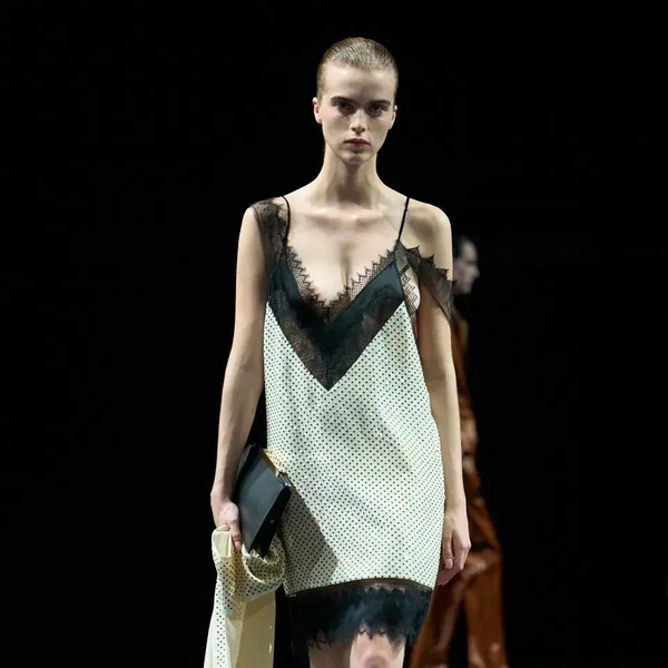 Еще один идеальный «наследник»: весенне-летний показ Tom Ford 2026 года стал подтверждением того, что Хайдер Аккерманн — идеальный последователь эстетики бренда. Он превращает открытую сексуальность, порочность в глубокий интеллектуальный манифест, гламур — из позерства в подтверждение уверенности в себе. Аккерманн создает одежду, в которой желание выражается не в откровенности, а в крое и блеске фактур. Платья, пальто и корсеты из мягкой кожи соседствуют с легкими сетчатыми материалами, создавая ощущение театра и внутреннего жара. Палитра выстроена в духе ночного города: глубокий черный, синий, аметистовый и рубиновый оттенки. Но главный акцент — не на цветах, а на том, как дизайнер показывает кожу: через прозрачность, разрезы, игру линий и бликов. Кто осмелится?