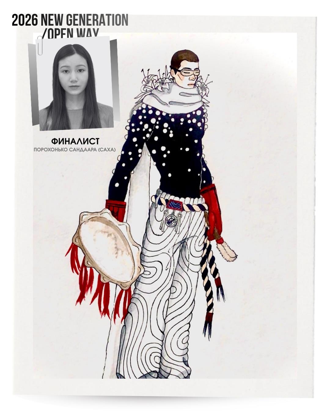 Порохонько Сандаара Эдуардовна — 23 года, Якутск. Коллекция: якутские узоры и природные мотивы, контрастные цвета, атмосфера северной природы.