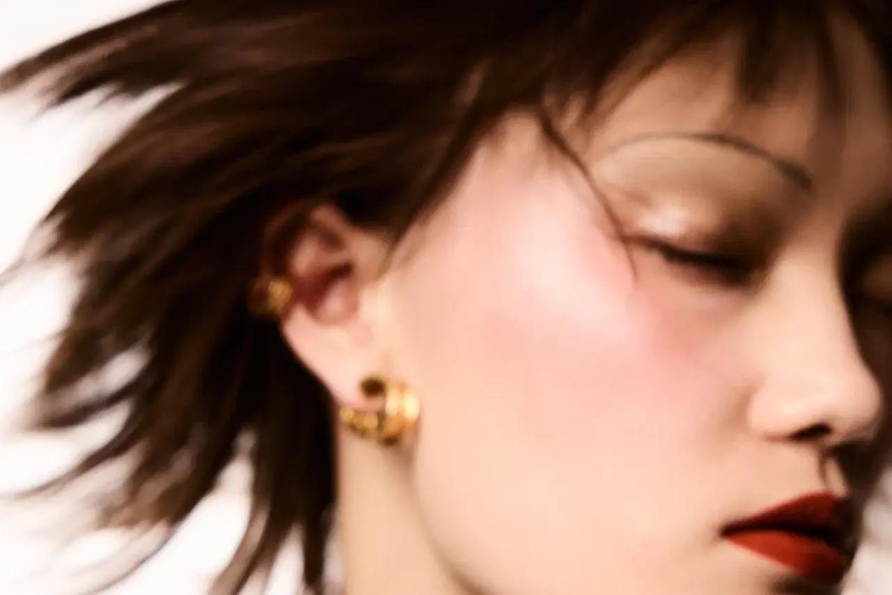 Боди, Blizhe; платье с отделкой из перьев страуса, The Attico; серьги из желтого золота B.zero1, BVLGARI