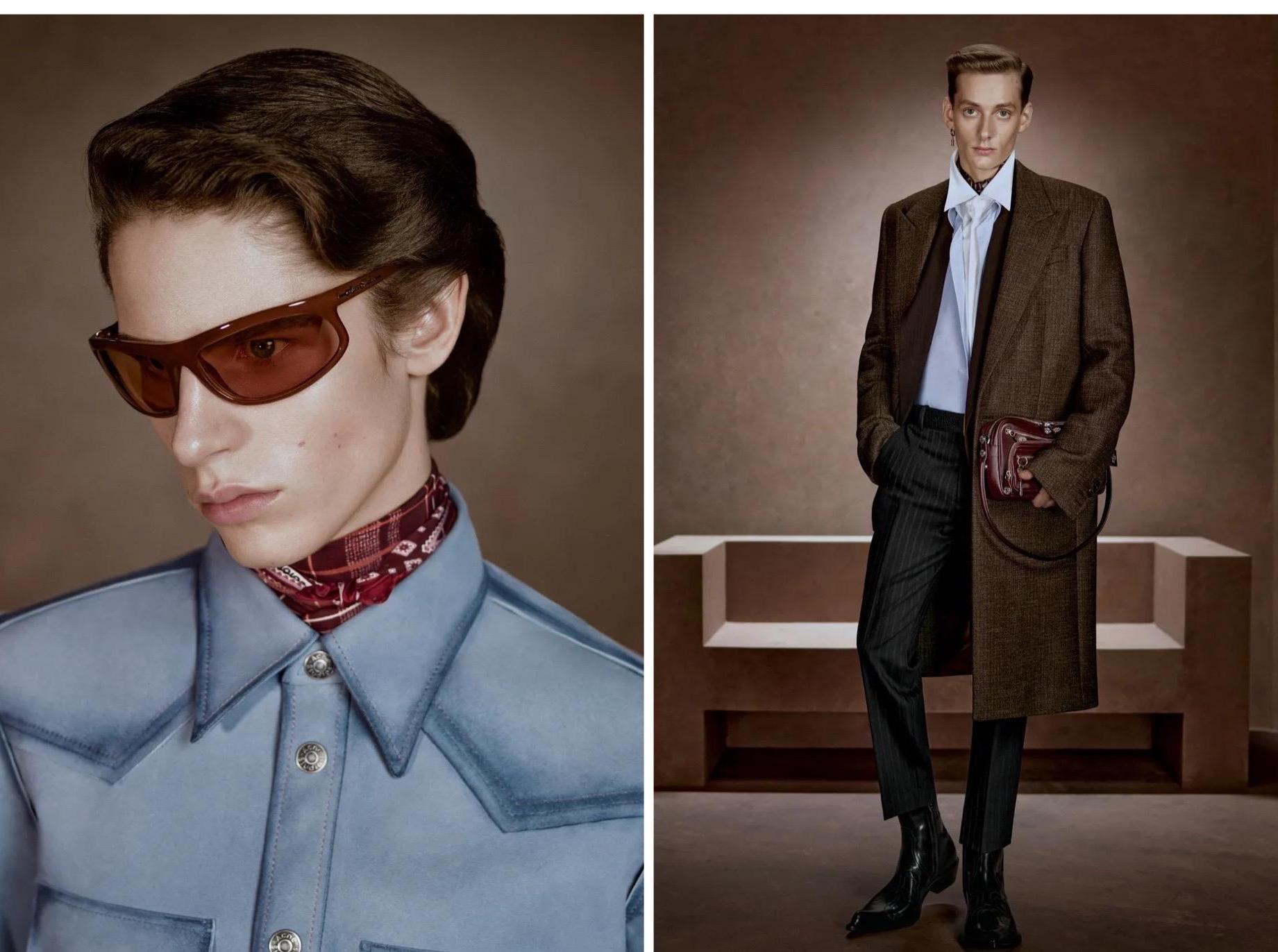 В коллекции появляются обновленные версии фирменных прямых джинсов 1996 года, выполненные в характерной для бренда технике trompe-l’oeil. Это когда деним не кажется денимом, а визуально мимикрирует под другие материалы; либо дополнен оптическими иллюзиями. Йоханссон предлагает носить коллажные и фотопринтованные джинсы. Причем — подчеркнуто респектабельно: с кардиганом из расчесанного мохера клюквенного оттенка и классической обувью, либо с безупречным аргайл-свитером и кожаным бомбером. Завершают образы шелковые шейные платки, которые добавляют неожиданную ноту утонченности и иронии.