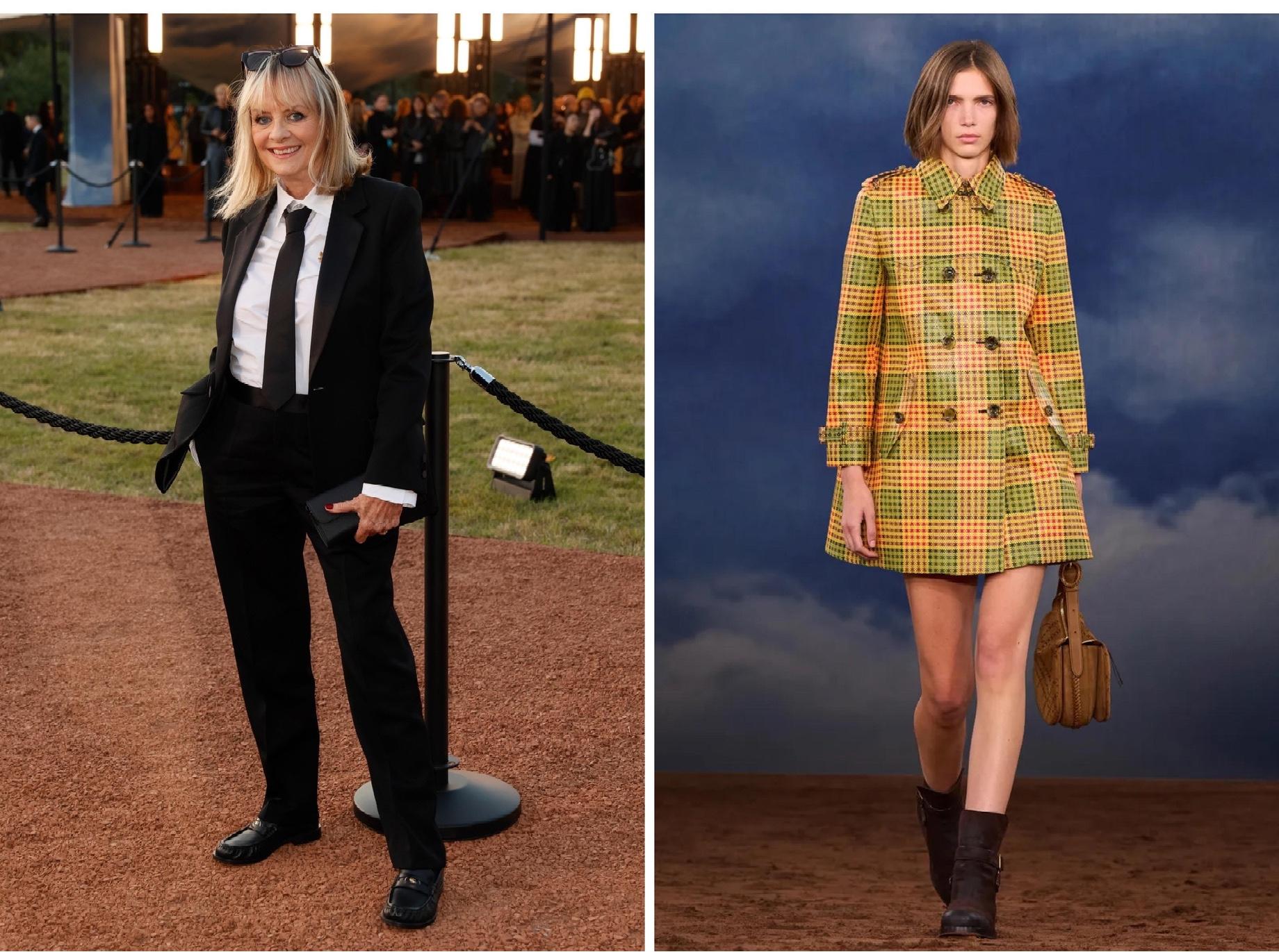 Зайдем с козырей. Главной звездой вечера стала икона британской моды и супермодель 1960-х — Твигги. Имя нарицательное целой эпохи. Она появилась в шатре, установленном в Кенсингтон-Гарденс, под восторженные возгласы и аплодисментов звездной публики и толп людей на улице. В свои 75 выглядит Твигги все так же стильно и озорно: платьицам-трапециям, с которыми ее принято ассоциировать в моде, она предпочла сдержанный мужской смокинг с тонким галстуком. Ее приглашение — не просто жест уважения и признания, но и прямая ассоциация. Декадой-вдохновением для Ли в сезоне весна-лето 2026 послужили именно 1960-е. А на подиуме мы увидели те самые мини-платья и эстетику рок-н-ролла.