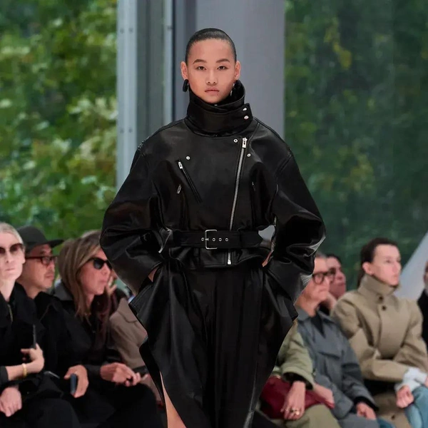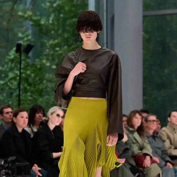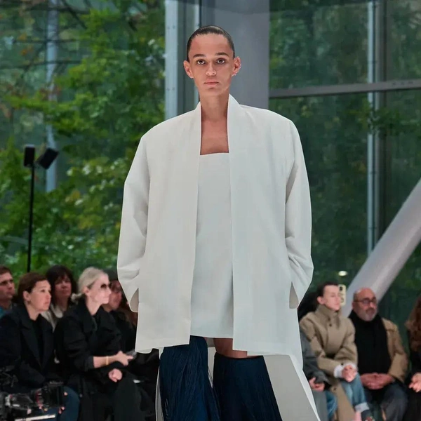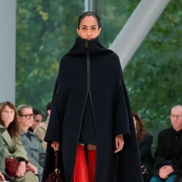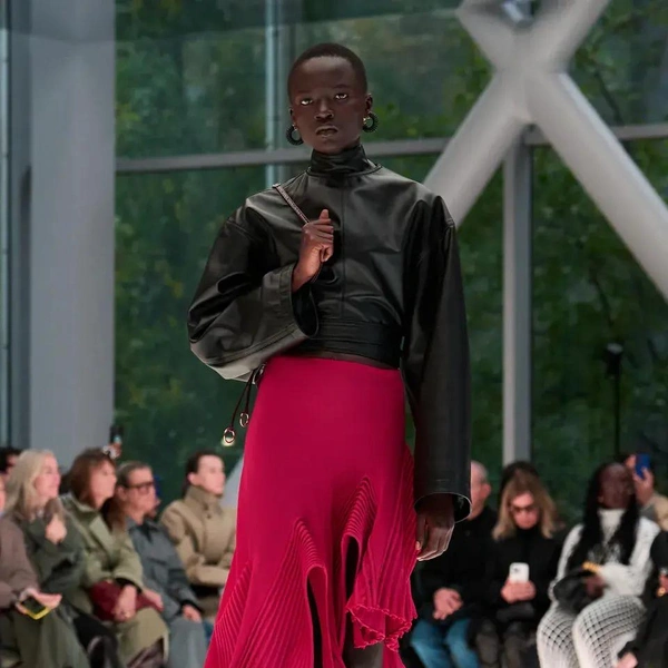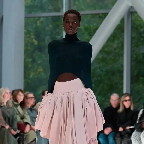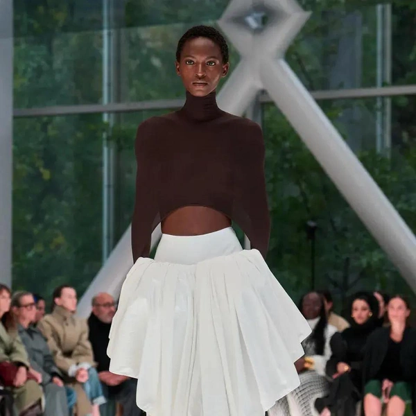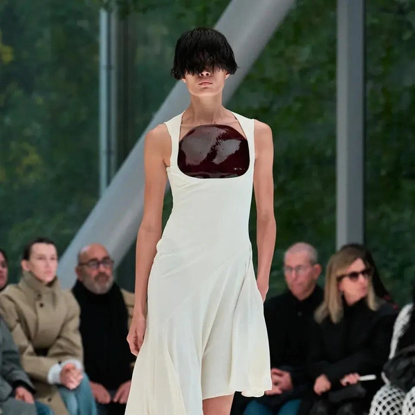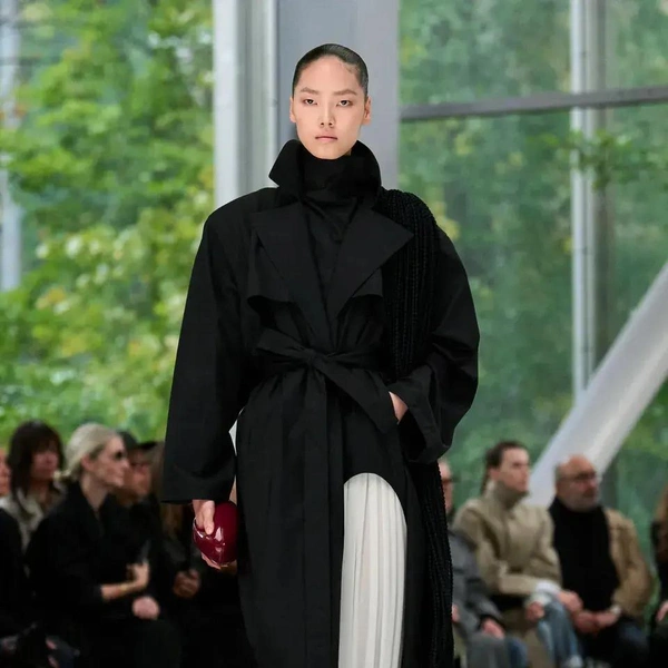 Одним из самых фотографируемых решений стали гибридные силуэты. Юбки-брюки с открытыми боками сочетали в себе строгость и провокацию, а трикотажные свитера-леггинсы без спинки выглядели одновременно интимно и футуристично.
