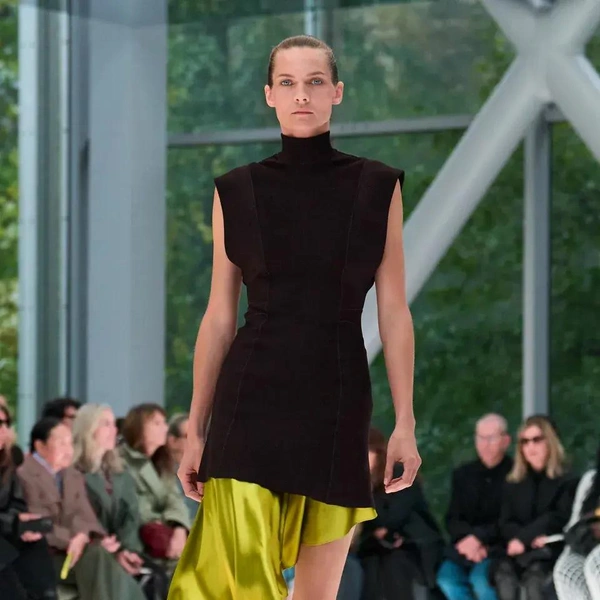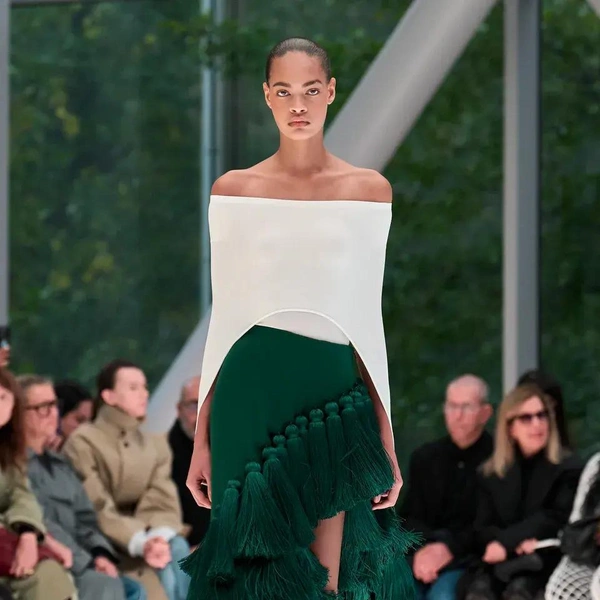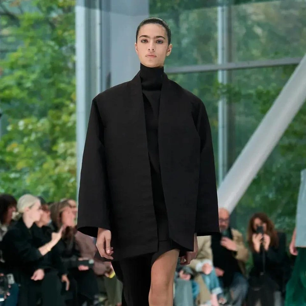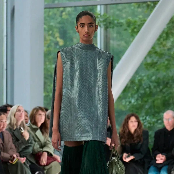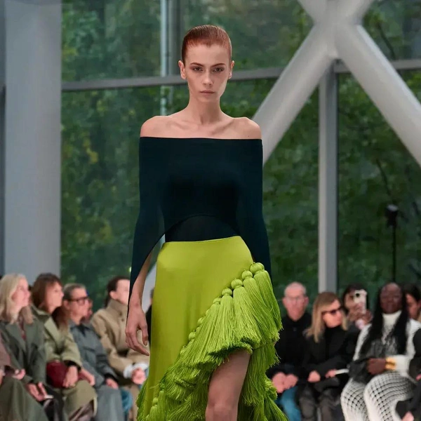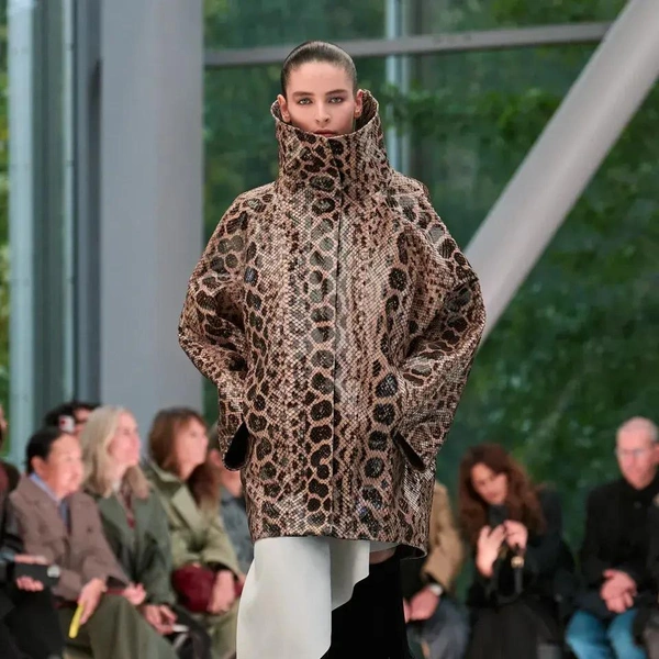 Показ Alaïa в Париже превратился в художественную инсталляцию. Под ногами гостей — цифровой пол с пульсирующими изображениями, над ними — зеркальный потолок, отражающий каждое движение. Модели шли между экраном и отражением, превращая пространство в живую метафору. Так Питер Мюлье предложил моде взглянуть на саму себя: на красоту как поверхность и как глубину, на одежду как зеркало общества. Идея коллекции — необычная и трагичная. Это «вещи, которые плачут». Под этим Мюлье подразумевает одежду, способную передавать эмоции — печаль, надежду, внутреннее напряжение. Трикотаж растягивался и отпускался, бахрома свисала, как слезы, ткани дышали и «всхлипывали».