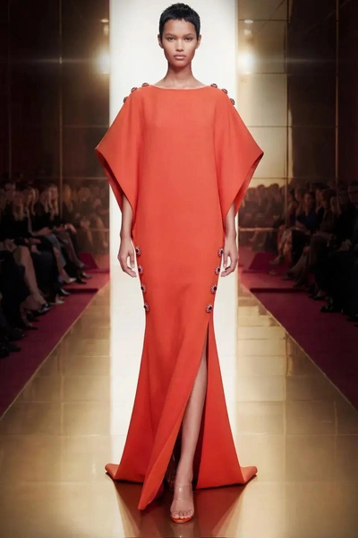 Силуэты коллекции варьировались от драматичного красного сюртука из крепа с вышитым шалевым воротником до гибридного трексьют-платья в пудрово-розовом оттенке, дополненного кулисками, усыпанными камнями. По задумке цифровые образы должны были точно передавать блеск микрожемчуга на вышивке, плотность тканей и даже их поведение в движении. Но с этим тезисом мы бы посмотрели. Дизайнер уверяет, что в его ателье уже разработаны макеты всех силуэтов, чтобы подготовить их к примеркам с клиентами. Таким образом, «виртуальный показ стал не заменой кутюра, а его предварительным этапом».