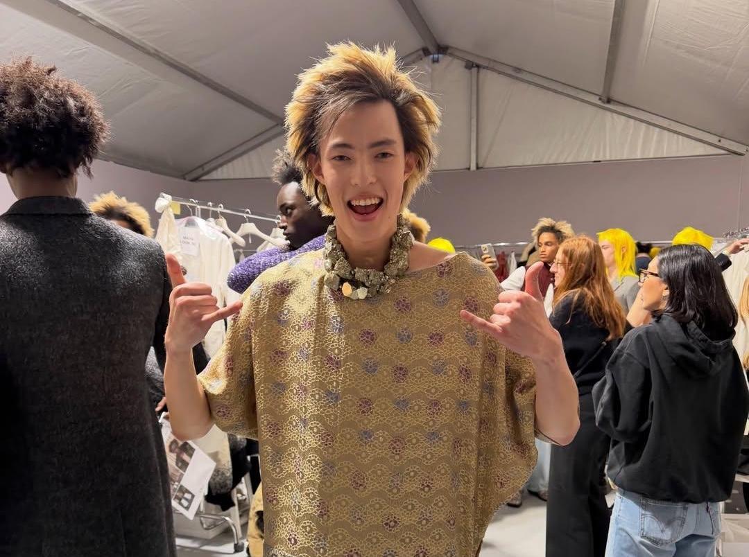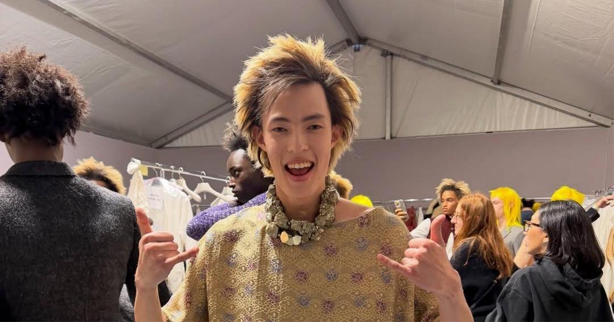 Более того, именно Альжану достался образ, который разлетелся по всем международным медиа. Это удлиненная рубашка-туника с метализированным цветочным бохо-рисунком, похожая на платье поверх денима. Все дело в том, что основным источником вдохновения Андерсона в сезоне осень-зима 2026 стали работы Поля Пуаре. И именно этот наряд напрямую отсылал к знаковому платью кутюрье начала XX века. По этой причине выход Альжана критики разбирали с особым пристрастием. А вот «спорный» кислотный парик Джандарбекову все-таки не достался. Ждем продолжения и пополнения портфолио молодого и очень красивого дарования!