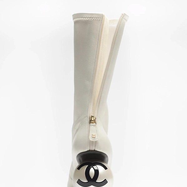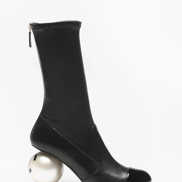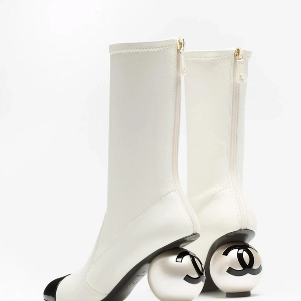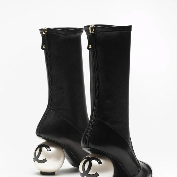 В центре внимания фэшеонисток — сапоги с оригинальным каблуком в форме крупной жемчужины с выгравированным логотипом «двойное С». Модель выполнена из эластичной ягнячьей кожи и покрыта лаком. Сапоги представлены в черном и белом вариантах. Цена в бутиках Chanel составляет 2700 долларов.