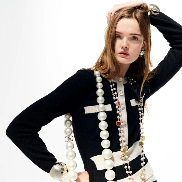 Главной героиней съемки Энтони Секлауи стала давняя модель Chanel — Лулу Тенни. На контрасте с эльфийской и хрупкой внешностью звезды подиумов акцентные вещи и объемные детали выглядят еще более впечатляюще! Команда мастерски «эксплуатировала» один из известных кодов Дома — жемчуг. Особенно интересно крупные жемчужины выглядят в аксессуарах, с которыми связаны главные эксперименты. Сумки в форме массивного ожерелья, кошелек, увеличенный до размера клатча, удлиненный бант на воротнике, прозрачная вуаль из тюля поверх твида, переливы камней на запястье.