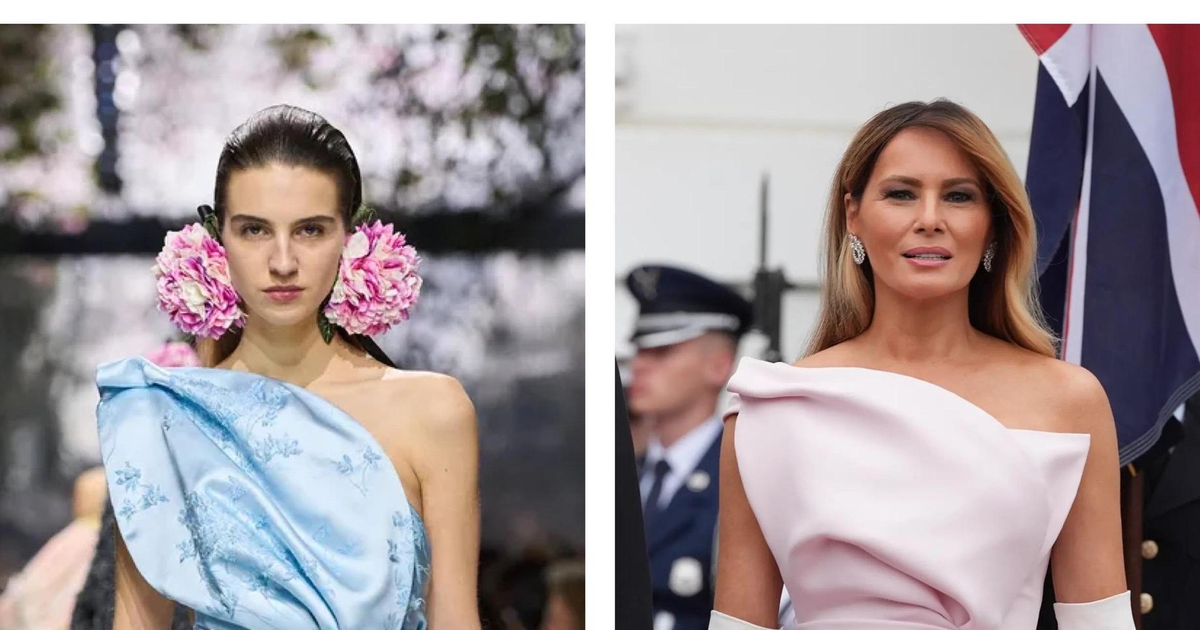 В центре всеобщего внимания, особенно в фэшн-индустрии, оказалась Мелания Трамп. Она выбрала бледно-розовое шелковое платье без бретелей из кутюрной коллекции Dior — в цвете, который сам Дом определяет как delphinium pink («оттенок цветка дельфиниума»). Образ дополнили высокие перчатки из замши цвета слоновой кости (обязательный элемент дресс-кода white-tie для женщин) и туфли-лодочки в тон платью, также Dior. Выбор оттенка наряда оказался символичным: дельфиниум — один из любимых цветков Карла III. Поместье Хайгроув, которым владеет Карл III, совместно с художницей Флоренс Супер выпустило эксклюзивный фарфор с изображением этих длинностебельных цветов.