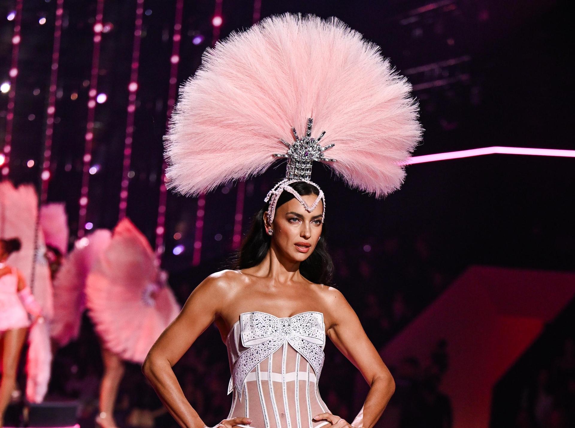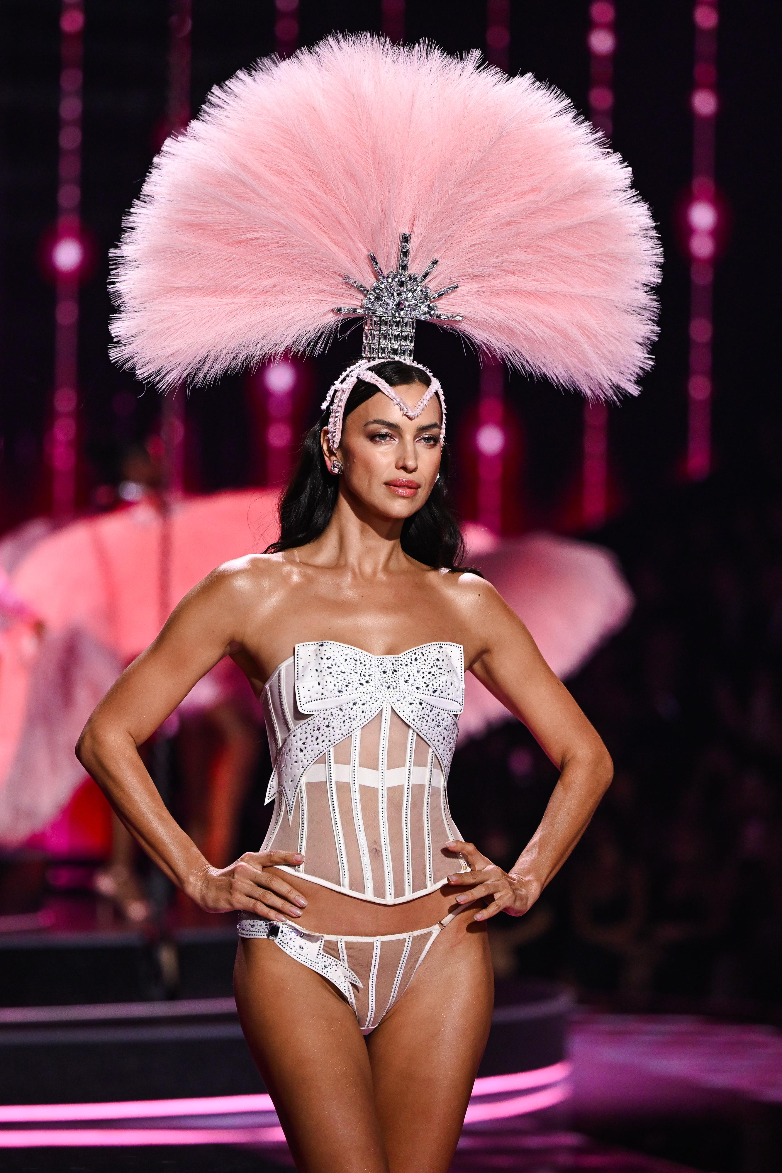 Ангельские крылья за спиной модель носит с 2016 года, сделав паузу в период «временного забвения» оскандалившейся бельевой марки. Для Шейк этот выход стал продолжением сотрудничества с брендом после прошлогоднего обновленного шоу 2024 года. В 2025-м Ирина продемонстрировав два контрастных образа. Первый выход был выдержан в духе будуара. Сначала Шейк появилась в комплекте из красного шелка с легкой накидкой на плечах — образ, сочетающий гламур и кокетство.