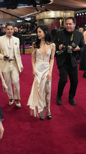 На церемонии Actor Awards 2026 (бывшая SAG Awards — Премия гильдии киноактеров) в Лос-Анджелесе Дженна Ортега сделала ставку на образ, который умело демонстрирует одну из главных подиумных тенденций сезона. Это бельевой стиль, который мы увидим в сезоне весна-лето 2026 повсеместно. Актриса, номинированная за работу в сериале «Уэнсдэй» (но не получившая заветную статуэтку), появилась в платье из осенней коллекции 2026 года британского лейбла Christian Cowan. Силуэт отсылал к иконам черно-белого кино, однако деконструкция лишала его прямолинейной ретро-интонации.