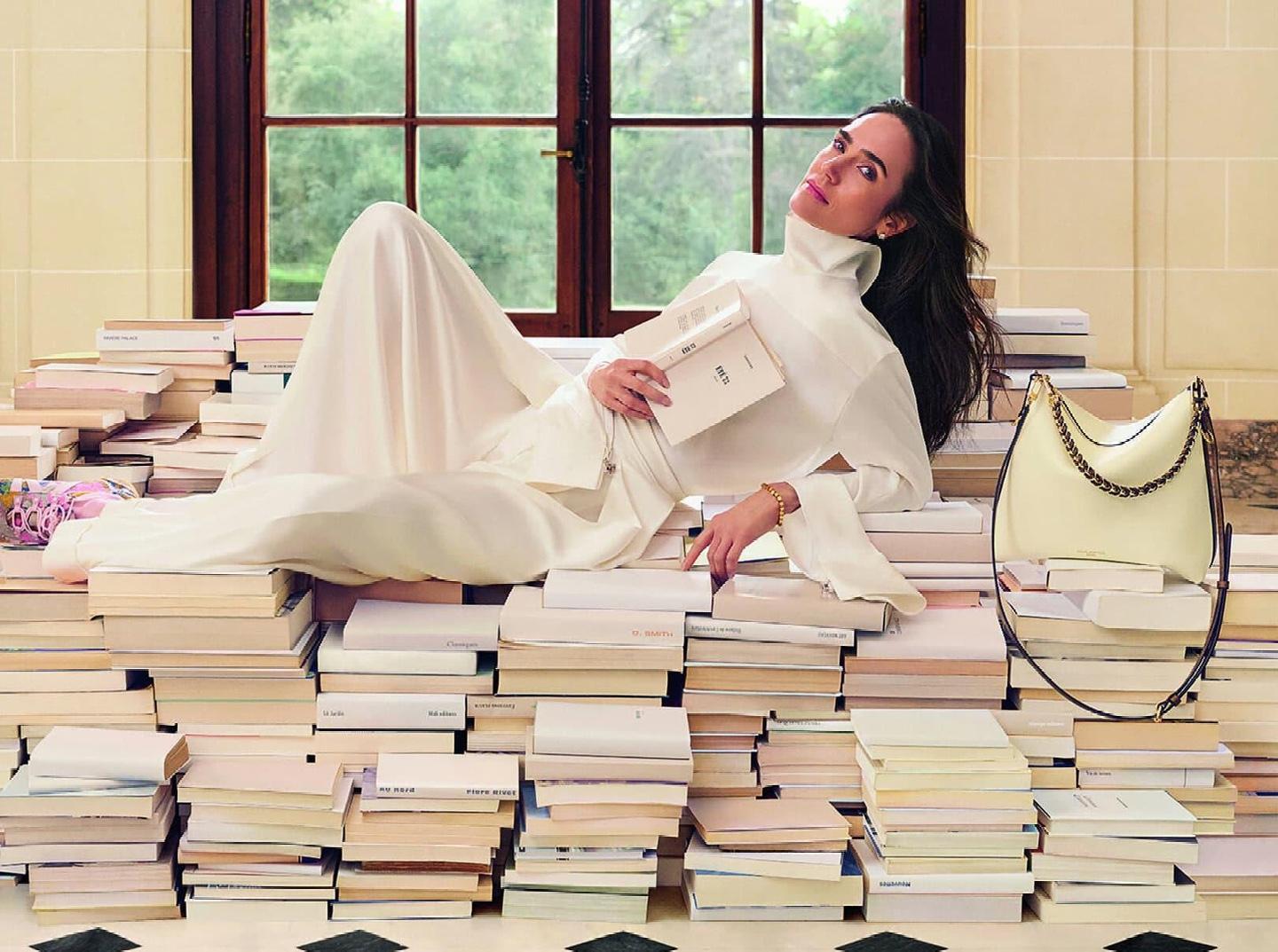 Кампания Louis Vuitton весна 2026 разворачивается в пространстве уединения и будто бы касается личной жизни звезды. В кадре Дженнифер Коннелли — не как икона красных дорожек, а как фигура наедине с собой. Она расположилась среди стопок книг, будто в паузе между чтением и размышлением, в состоянии осознанного покоя. Это не расслабленность как отсутствие действия, а намеренная остановка — жест, который сегодня звучит почти радикально.