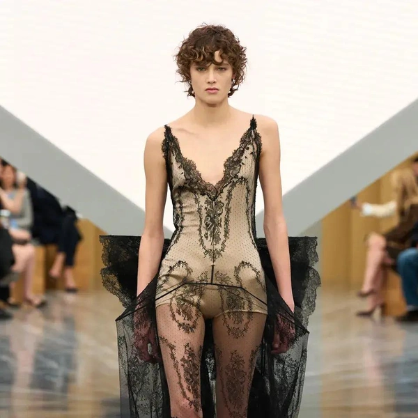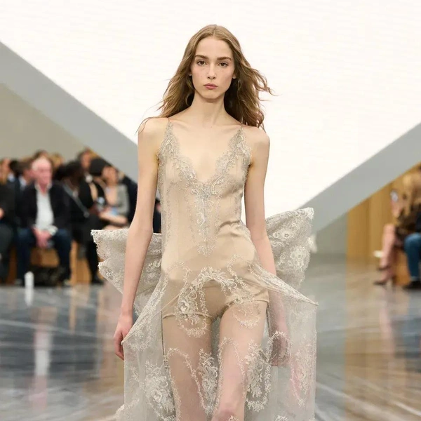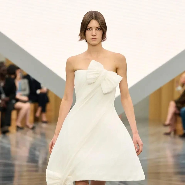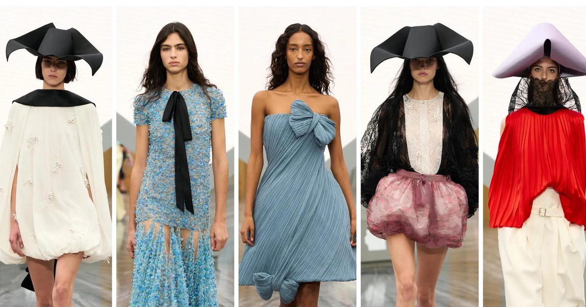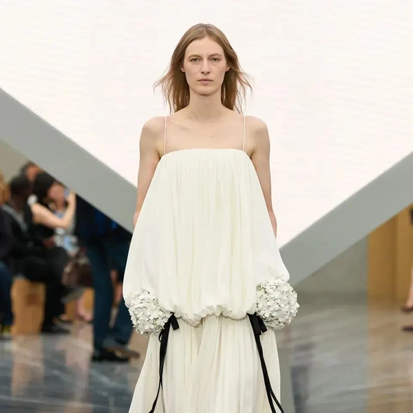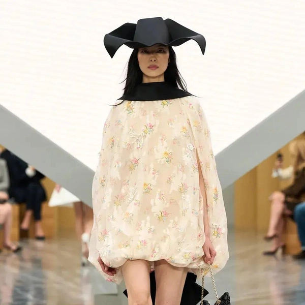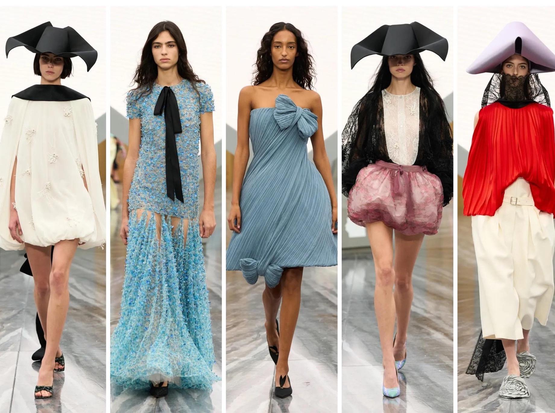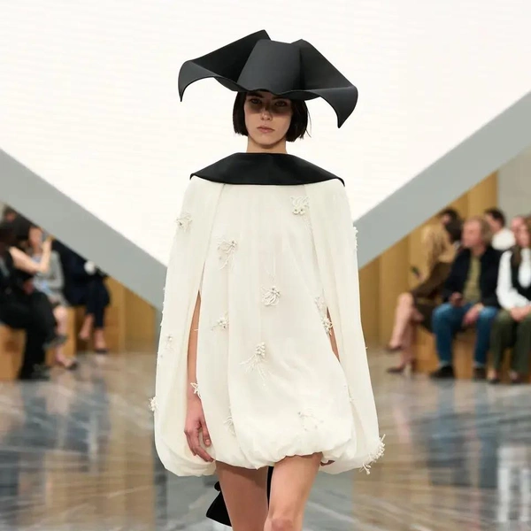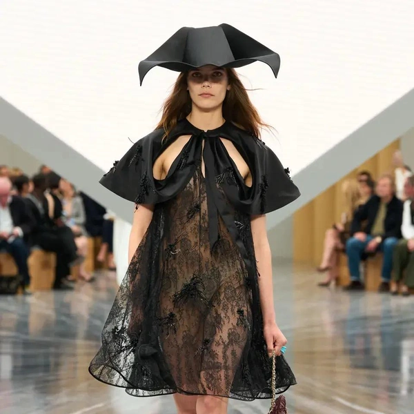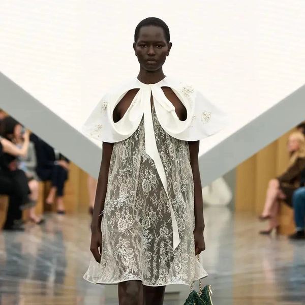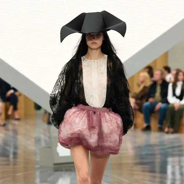 Коллекцию открыла белая плессированная «ламповой» юбка-платье, которое держалось на невидимых обручах и парило над подиумом. В шоу мы увидели и культовые жакеты-бар, уменьшенные до пропорций кукольной одежды, платья-пузыри и юбки-колокола, выполненные из прозрачных кружев и пушистого трикотажа. Были и «негабаритные» топы из сатина с кружевными воротниками, спускающимися до пола. Андерсон сознательно отказался от цитирования классических линий Dior, вместо этого он создал собственную архитектуру, игру «гармонии и напряжения», которая выглядела одновременно современно и театрально.