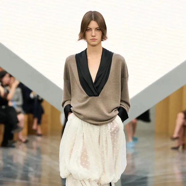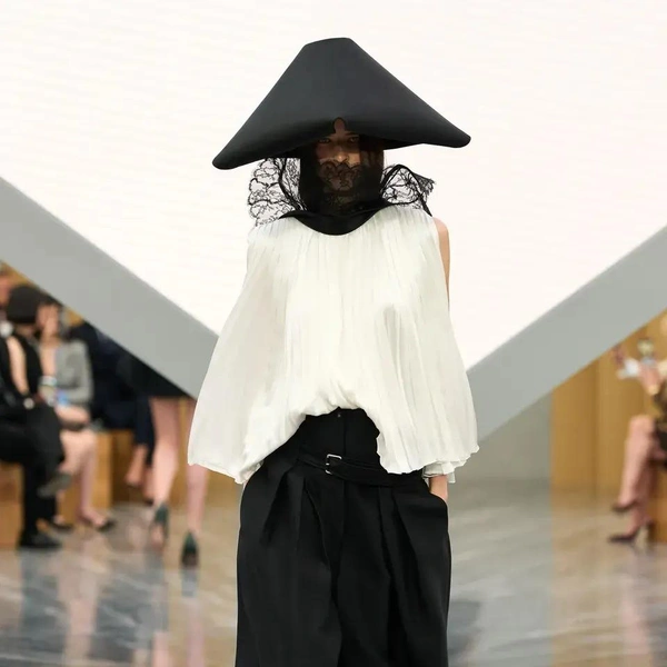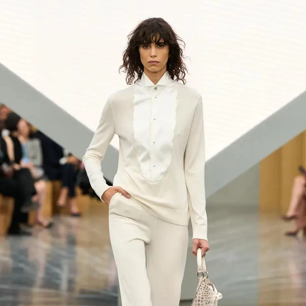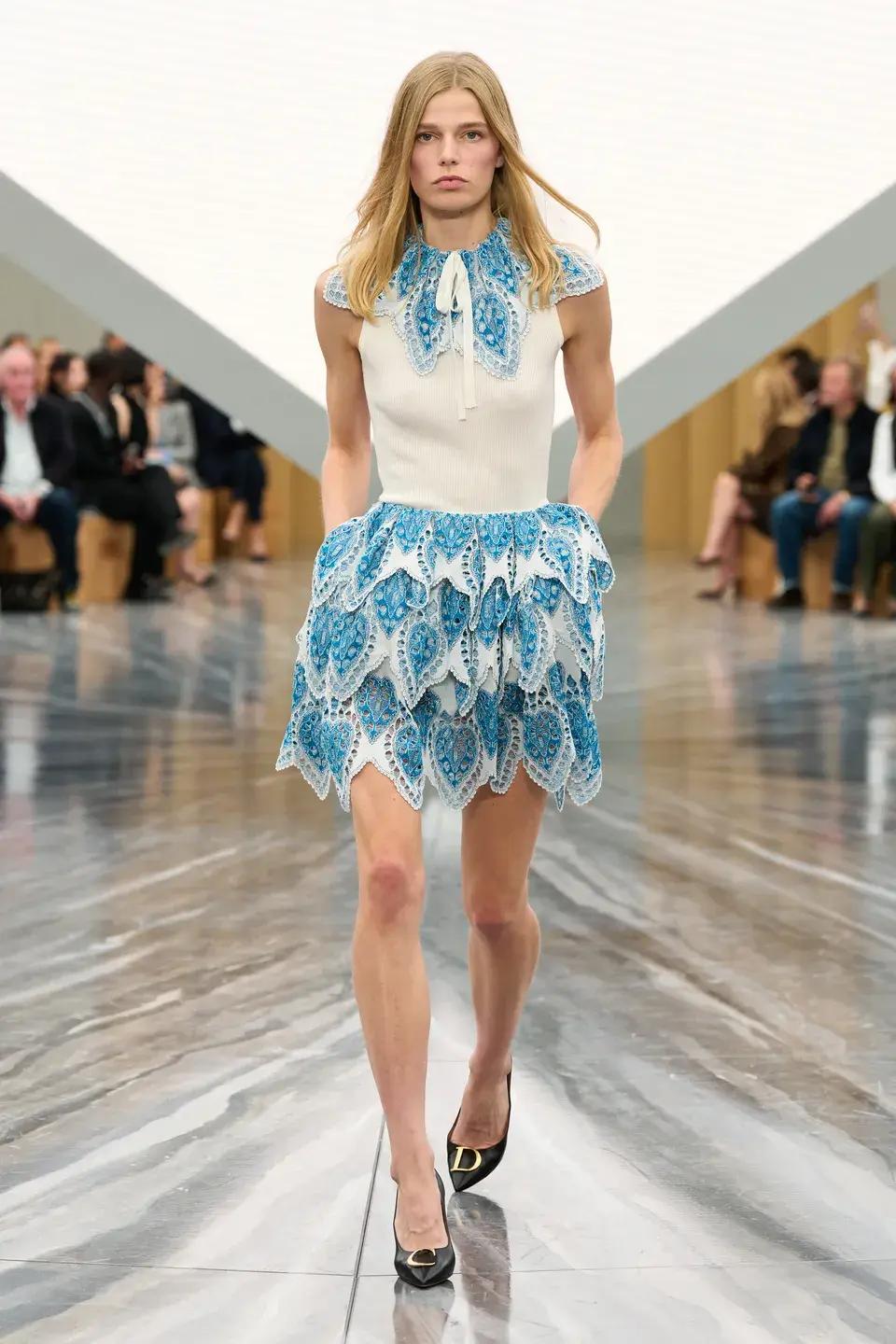 Джонатан Андерсон вошел в историю как первый дизайнер, одновременно возглавивший и мужскую, и женскую линии Dior. И на подиуме это отразилось в перекличке образов. Были парные комплекты — рубашки с жесткими воротниками, джинсы и накидки, которые можно представить и на мужчине, и на женщине. Мужские карго-шорты, созданные по мотивам платья Delft 1948 года, здесь он превратил в мини-юбки. В его глазах Dior теперь — это единый универсальный гардероб, где одежда не ограничивается гендерными рамками.