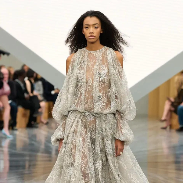 К слову, про кутюр. Этим летом Dior впервые пропустил Неделю высокой моды в Париже. Но Андерсон захотел восполнить этот пробел и показать, что и к этому вызову он готов. (Ранее дизайнер никогда не создавал кутюрные коллекции.) При всей дерзости шоу в каждом образе чувствовалось мастерство Dior. Например, в несколько образах он использовал тончайшее кружева шантильи. Эти детали показали: Андерсон может шокировать формой, но в основе остается то, что всегда отличало его само и нужно было Dior — ремесло и работа с историческими мастерскими. Как оказалось, работать с ремесленниками способны единицы!