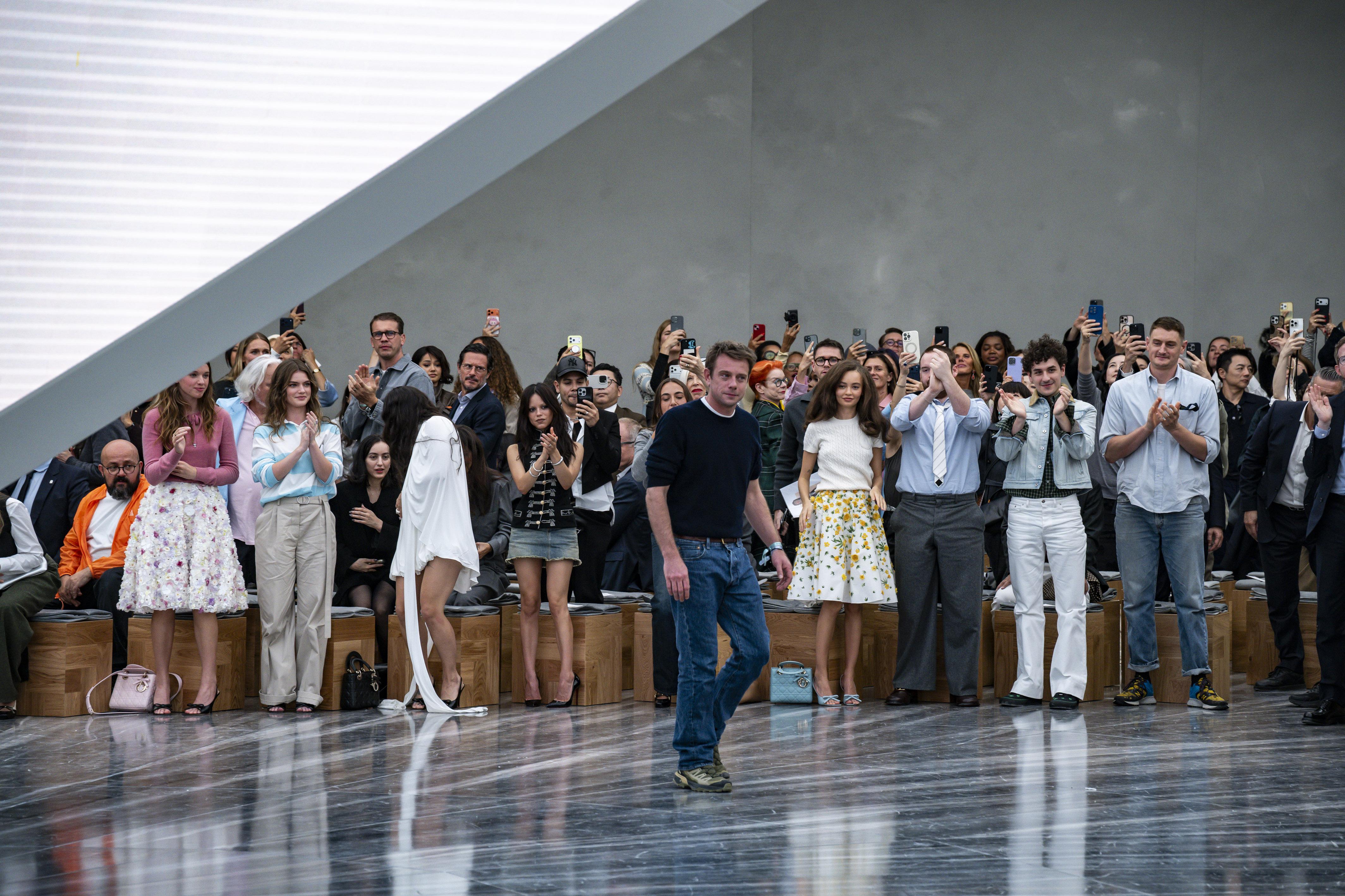 Последние несколько лет показ Dior «застолбил» за собой локацию — сад Тюильри, где показывают все регулярные коллекции бренда. (За исключением купюра — тому место в Музее Родена.) Андерсон не стал переезжать и сохранил лакомую локацию. В зале собрались друзья и амбассадоры бренда: Ана Тейлор-Джой, Шарлиз Терон, Дженнифер Лоуренс, Дженна Ортега, Джису, Джимин, Розалия, Уиллоу Смит, Грета Ли и Майки Мэдисон. Не хватало только J’Adore-Рианны: новоиспеченная мама осталась с семьей. На первом ряду можно было увидеть владельца LVMH Бернара Арно, его дочь, генерального директора Dior, Делфин Арно рядом с первой леди Франции Брижит Макрон и актером Джонни Деппом, лицом аромата Sauvage. Присутствие политиков, актеров и поп-звезд подчеркивало, что этот дебют выходит за рамки моды. Это культурное явление.