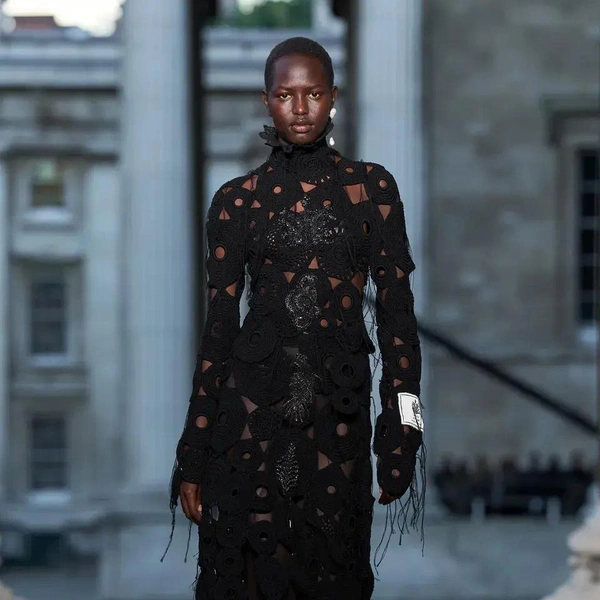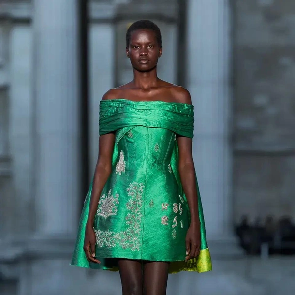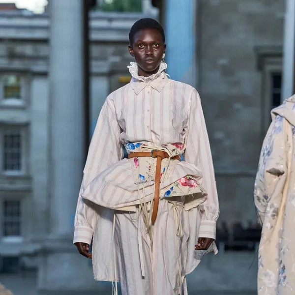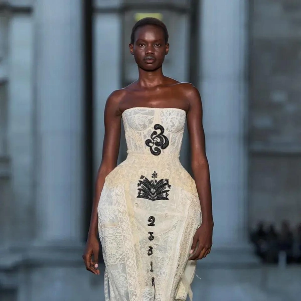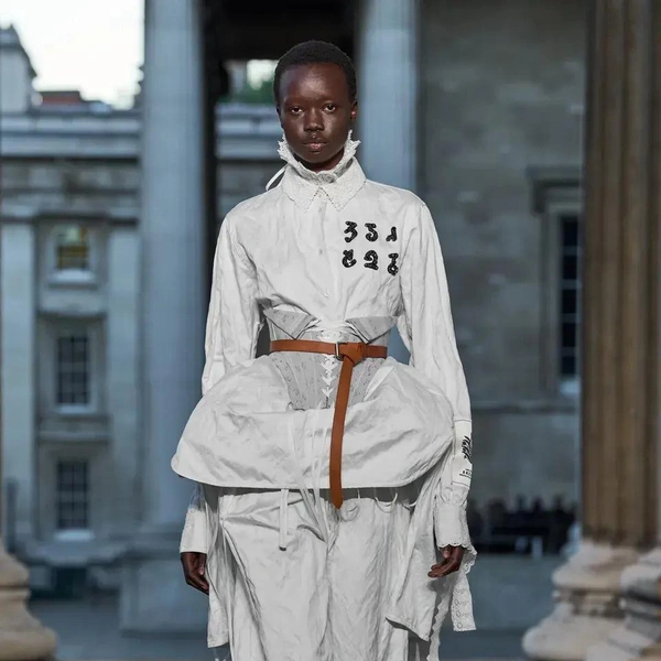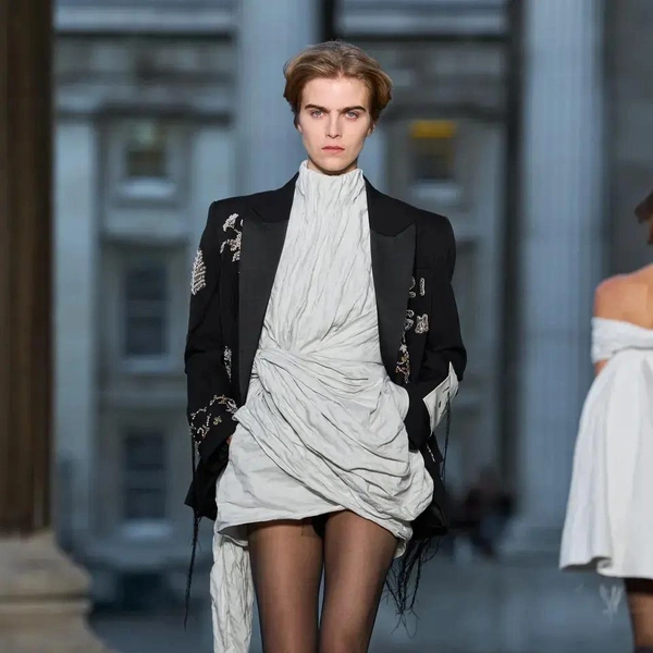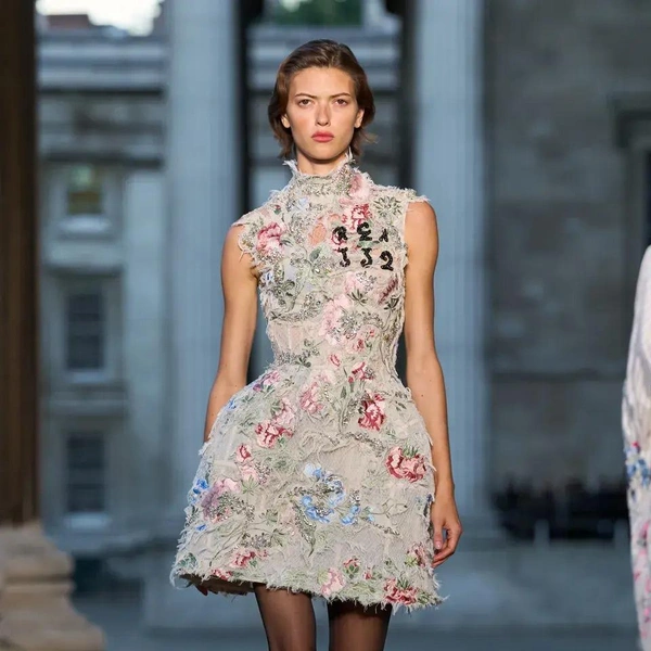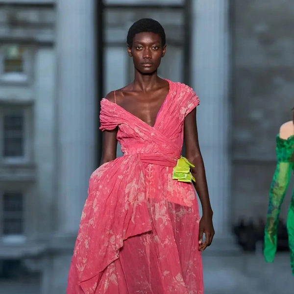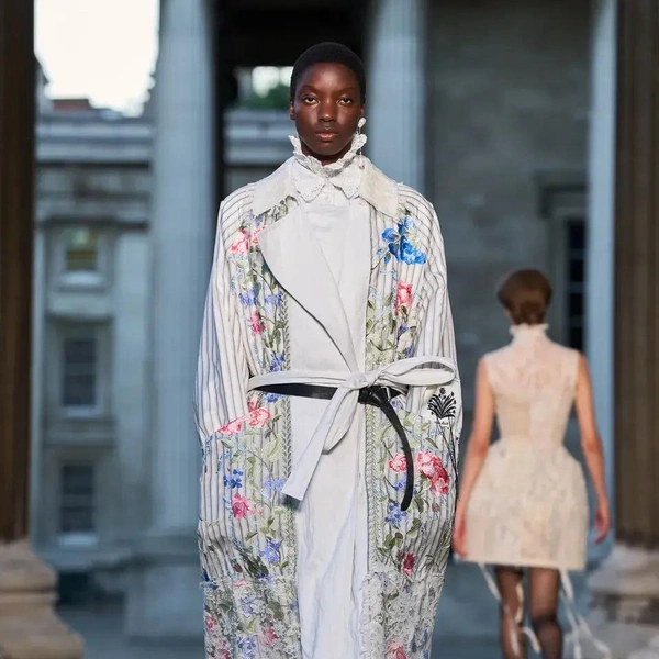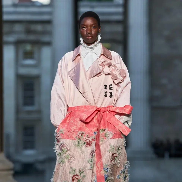 Итак, Erdem. Уже при первых выходах моделей на подиум мы поймали себя на ироничной мысли: «Кажется, мы знаем, куда отправилась Мария Грация Кьюри после ухода из Dior». Слишком уж явно корсетные платья-панье с акцентированными бедрами, ленты-шнуровки, викторианское кружево, высокие воротники с оборками и черно-белые графичные принты напоминали ее последние работы на посту французского Дома. На самом же деле канадско-турецкий дизайнер Эрдэм Моралиоглу, регулярно показывающий коллекции в календаре Лондонской недели моды, никуда не исчез. А сходство силуэтов и приемов объясняется общим источником вдохновения — стилем Марии-Антуанетты. (Возможно, это связано с выставкой о французской королеве, недавно открывшейся в Музее Виктории и Альберта, а возможно, всего лишь совпадение.)