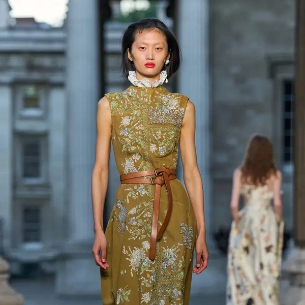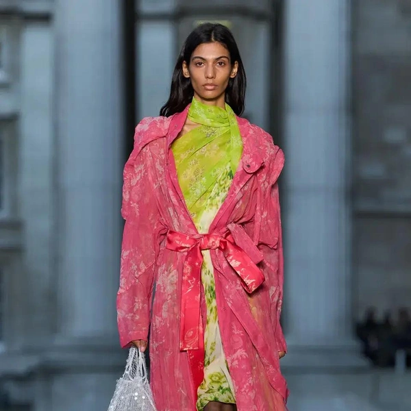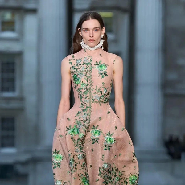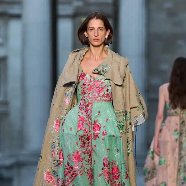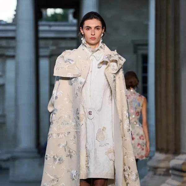 Однако помимо очевидной «шальной императрицы» есть у Erdem еще одна, куда более неординарная музы. Коллекция посвящена сюрреалистическим видениям медиума XIX века Элен Смит. Моралиоглу впервые узнал о ней на Венецианской биеннале 2022 года, посвященной женщинам-сюрреалисткам. Эта необычная и почти забытая персона утверждала, что была реинкарнацией индийской принцессы и даже общалась с марсианами. Смит разработала собственный «марсианский язык» и создавала рисунки с фантастическими пейзажами и дворцами. Ее феномен изучал профессор Женевского университета Теодор Флурнуа, посвятивший ей книгу «От Индии до планеты Марс», где описал ее «романтические циклы». Именно эта идея стала основой коллекции. Алфавит Смит стал частью вышивки. А к «индийской» тематика отсылают роскошные расслабленные пальто-халаты и яркие цвета, будто богатые ткани испачканы порошком-гулалом во время празднования холи. По словам дизайнера, строгие силуэты в коллекции символизировали фигуру психиатра, сопровождавшего Смит.