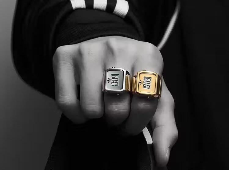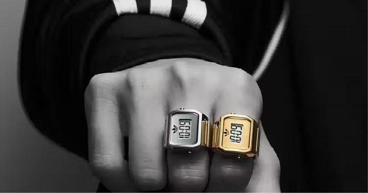 Adidas внезапно делает шаг в сторону и отходит от классических представлений о спортивной эстетике и высоких достижениях. Весенняя новинка бренда — Digital Two Ring — это кольцо со встроенными электронными часами. Никакого отношения к «умным» гаджетам аксессуар не имеет. Это украшение в ретрофутуристическом дизайне. Первый подобный релиз в истории трилистника, и, судя по реакции клиентов в Азии, попадание оказалось очень точным.