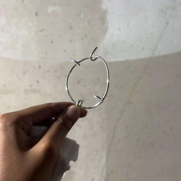 Металлические дуги — визуальная отсылка к четырем белым стежкам, знаковому элементу логотипа Maison Margiela! Именно с помощью четырех нитей-скобок бренд прикрепляет свои этикетки изнутри изделий, оставляя снаружи лишь след — четыре шва на спине. Этот символ давно стал метафорой невидимого присутствия бренда в гардеробе и индустрии: одежда без логотипов, но с узнаваемыми «отметинами».