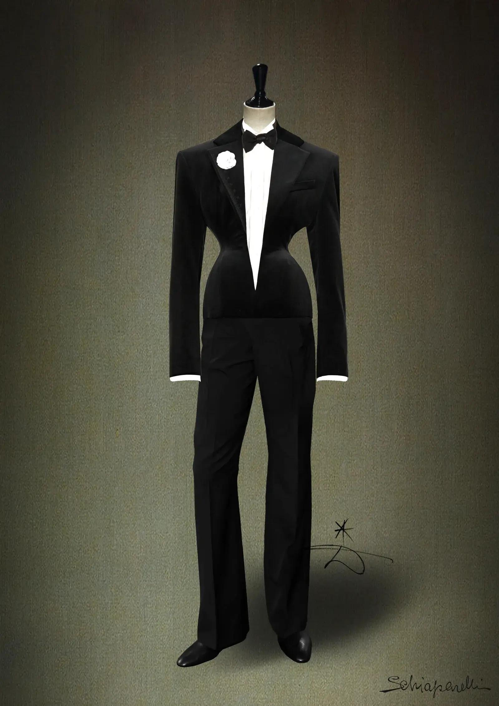 На лацкане была закреплена белая декоративная гвоздика, имитирующая традиционный нагрудный платок. А вдоль спины тянулась система шнуровки. Таким образом у пиджака появилась неожиданная корсетная составляющая (визуально перекликающаяся с выходом артиста в Jacquemus на Met Gala 2023, где он уже играл с открытой линией позвоночника).