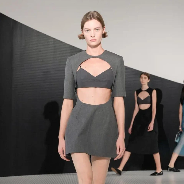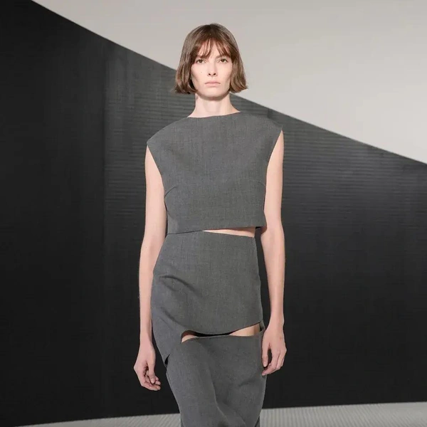 Главная идея коллекции — показать тело. Диагональные прорези на рубашках и юбках, разрезы на брюках, «иллюминаторы» на платьях создавали эффект откровенности в рамках строгого минимализма. Добавились воротники, текстурные вставки и слоистые ткани — простота нарастила объем.
