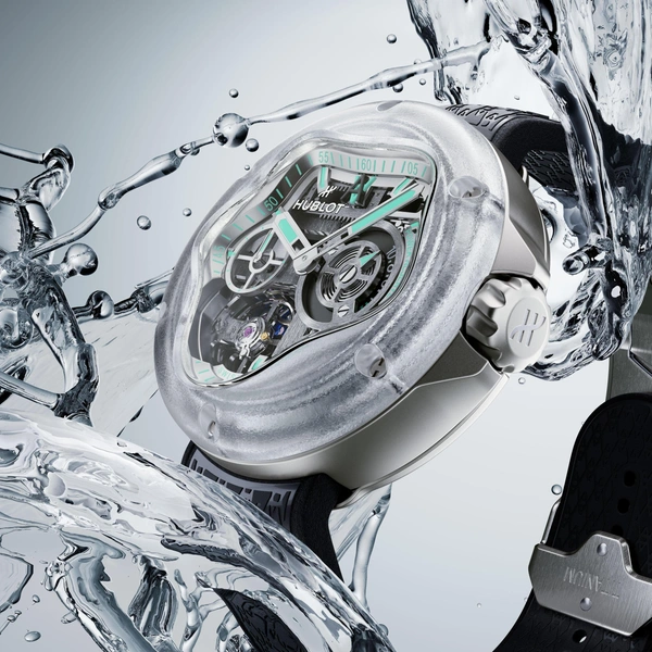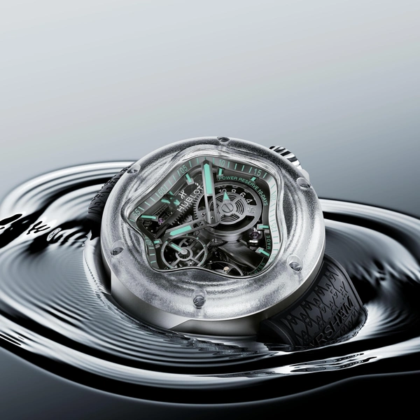 А вот по своей геометрии корпус новинки отличается от привычной для Hublot «архитектуры»: линии более плавные, без углов, а отверстие на циферблате напоминает форму брызг воды.