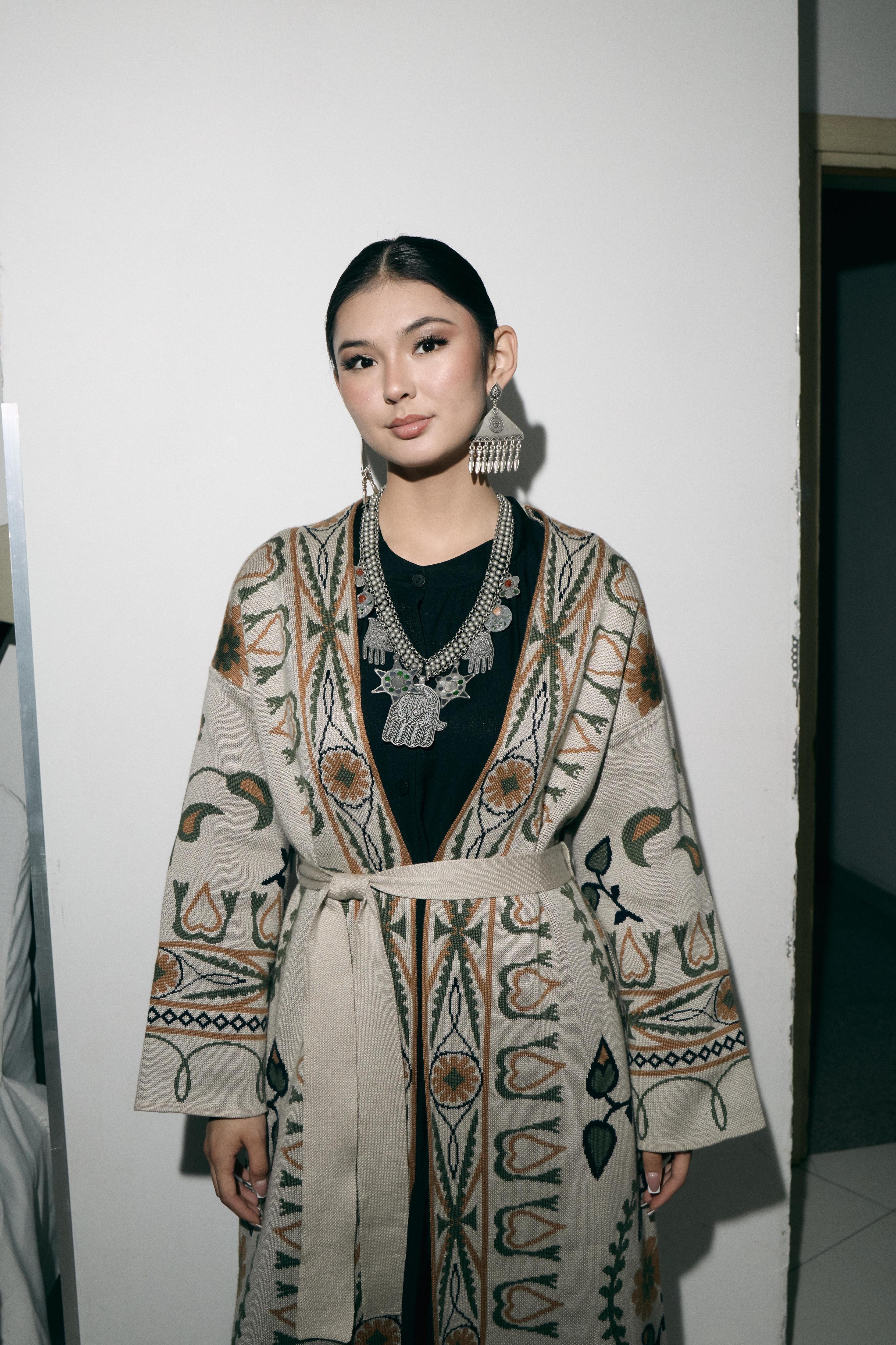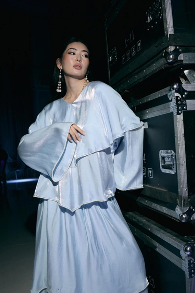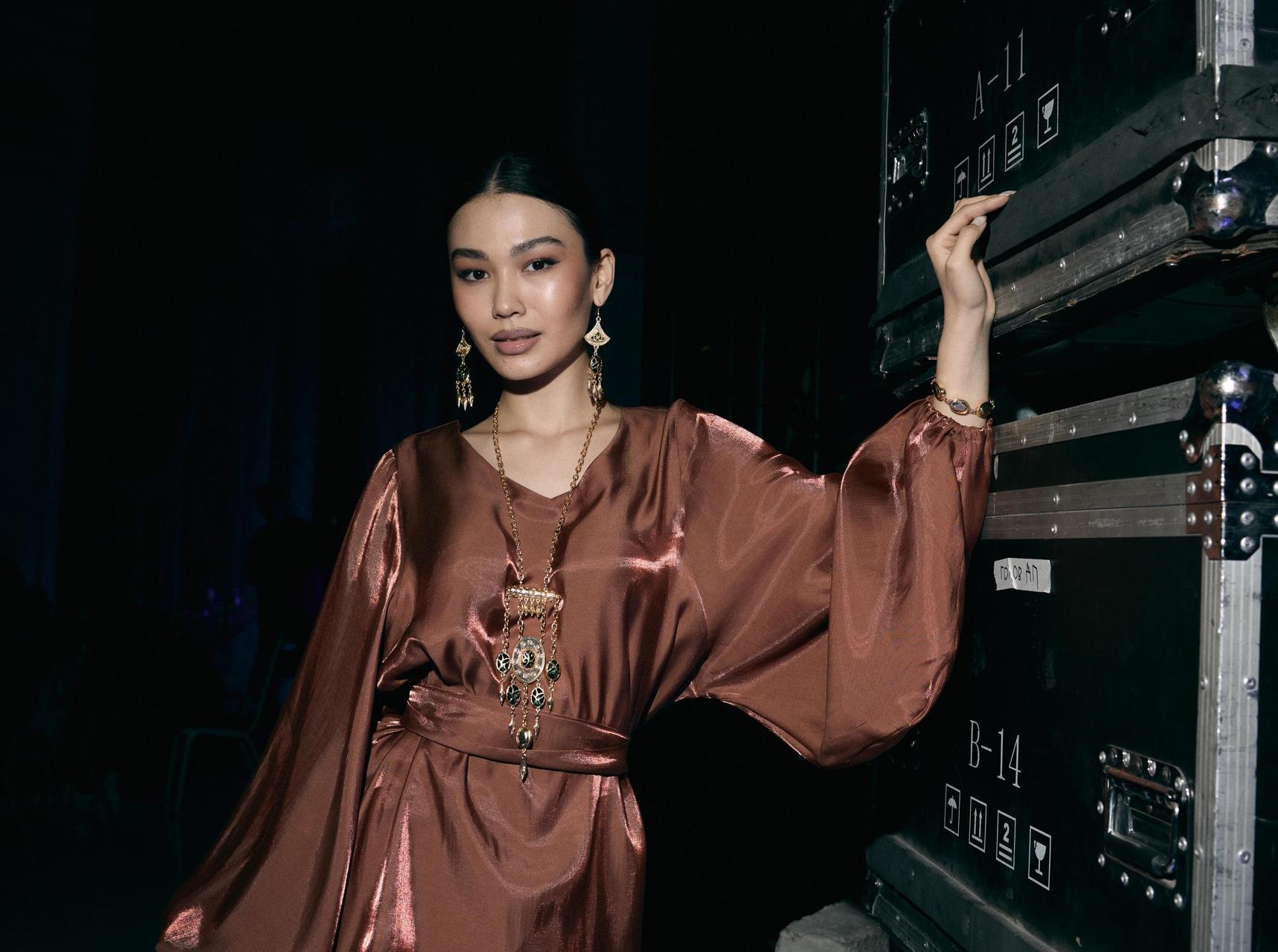Дизайнер Айнаш Кара — одна из тех участниц KFW, которая выступает за национальную идентичность и чествует торжество казахской культуры. Коллекция бренда AINASH QARA получила название «ЛЕБІЗ» и объединяет этническое наследие страны с актуальной бохо-эстетикой — как в последних коллекциях у Dries Van Noten или Etro, только более расслабленные. Характерные принты и узоры дополнены вышивкой и кружевом. А натуральные фактуры тканей даже со стороны ощущаются как приятные к телу, а платья с оборками и блеском муара завораживают в движении.