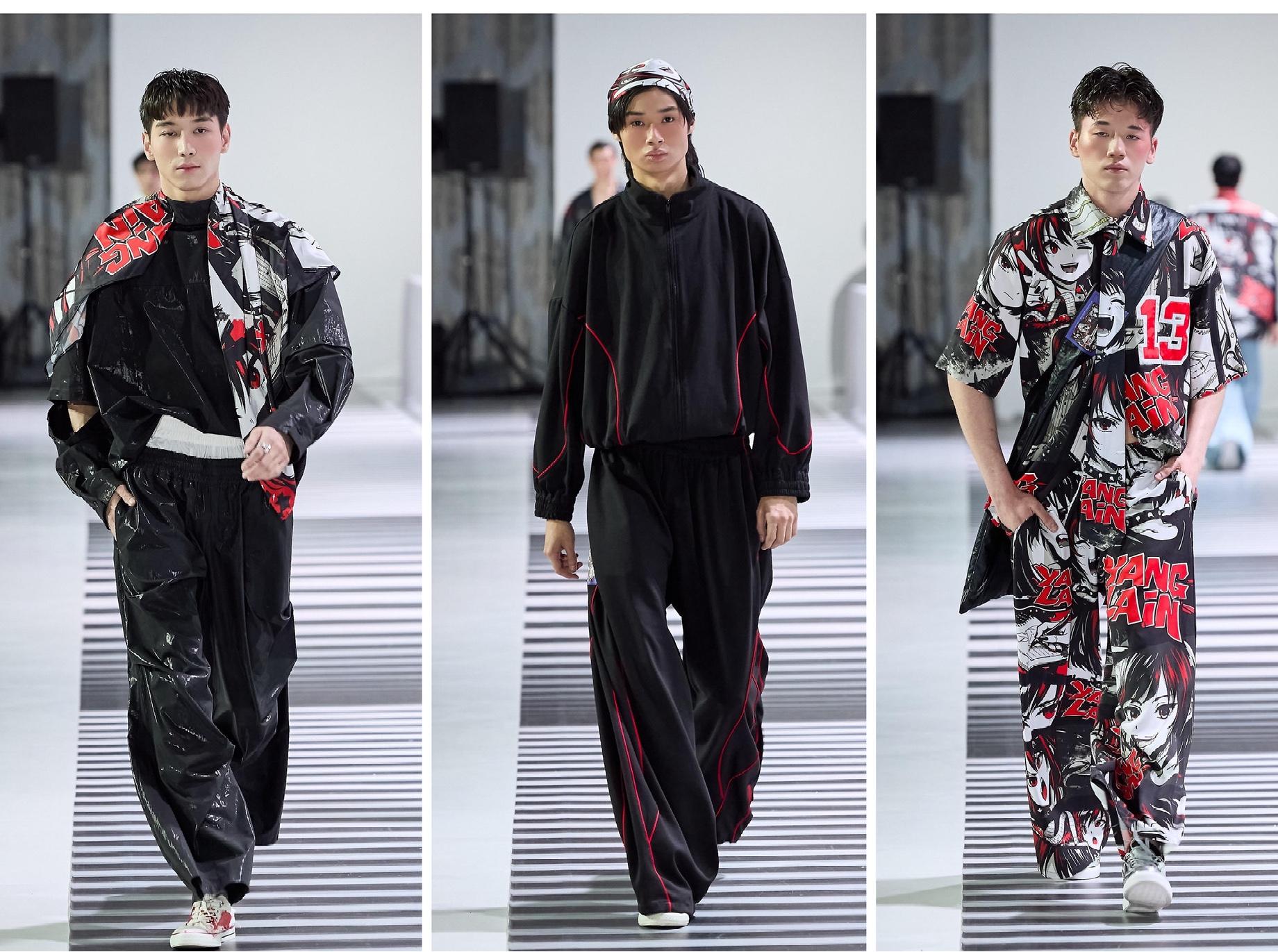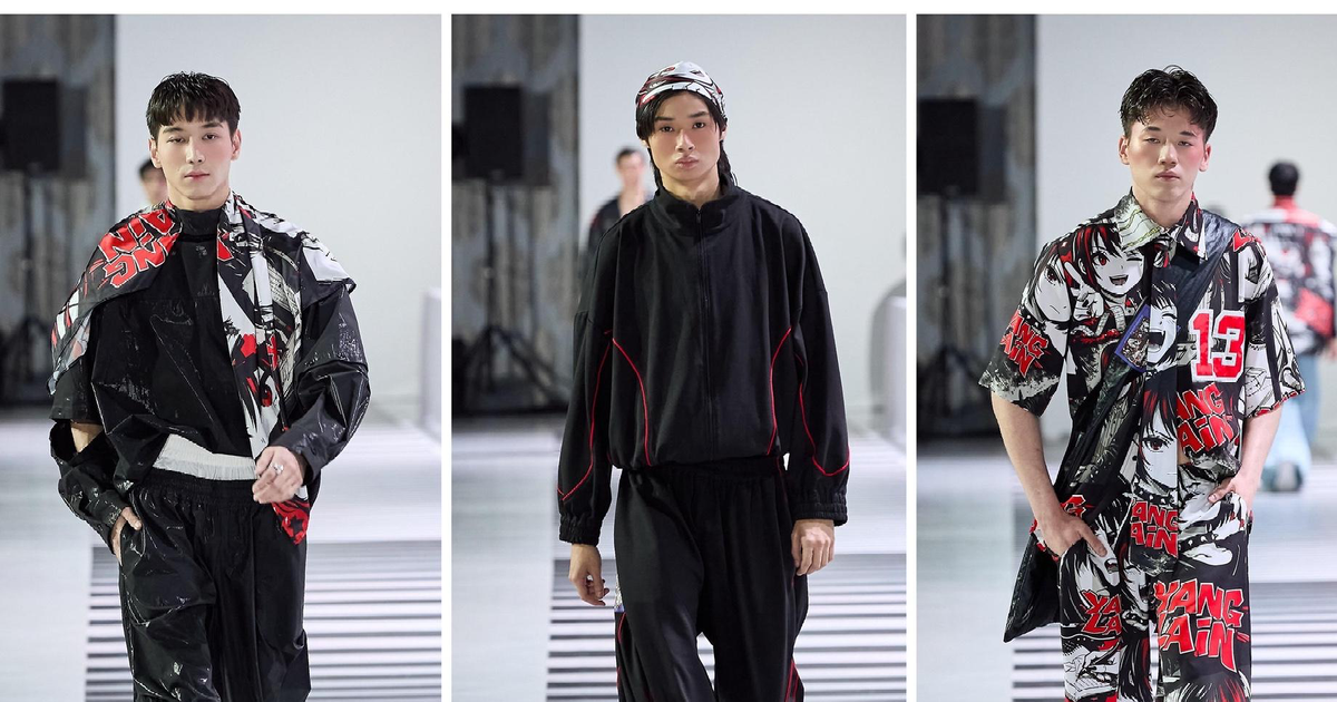 Шоу весной 2026 года получилось особенным еще и потому, что Ботабаева впервые продемонстрировала на подиуме целиком мужскую коллекцию. Узнать почерк дизайнера можно без труда: это расслабленный стритвир, придающий уверенности в себе. Рубашки и куртки превращаются в жилетки и безрукавки. Спортивные брюки меняют ширину и длину. Модели предполагают разные способы ношения одной вещи без ущерба стилю. Огромный фокус в Yang Lain делают на тканях — уникальной палитре и принтах. В этом сезоне источником вдохновения для Ботабаевой стала эстетика японской манги. Красочный рисунок-комикс в красно-черной цветовой гамме, созданный дизайнером вручную и отражающий личный путь бренда. Например, на отдельных рисунках вымышленный персонаж создает эскизы коллекции. Принт моментально обращает на себя внимание и выглядит не по-детски наивно, а дерзко и даже самоуверенно. Как и число «13» на куртках и брюках — для Адили оно явно счастливое!