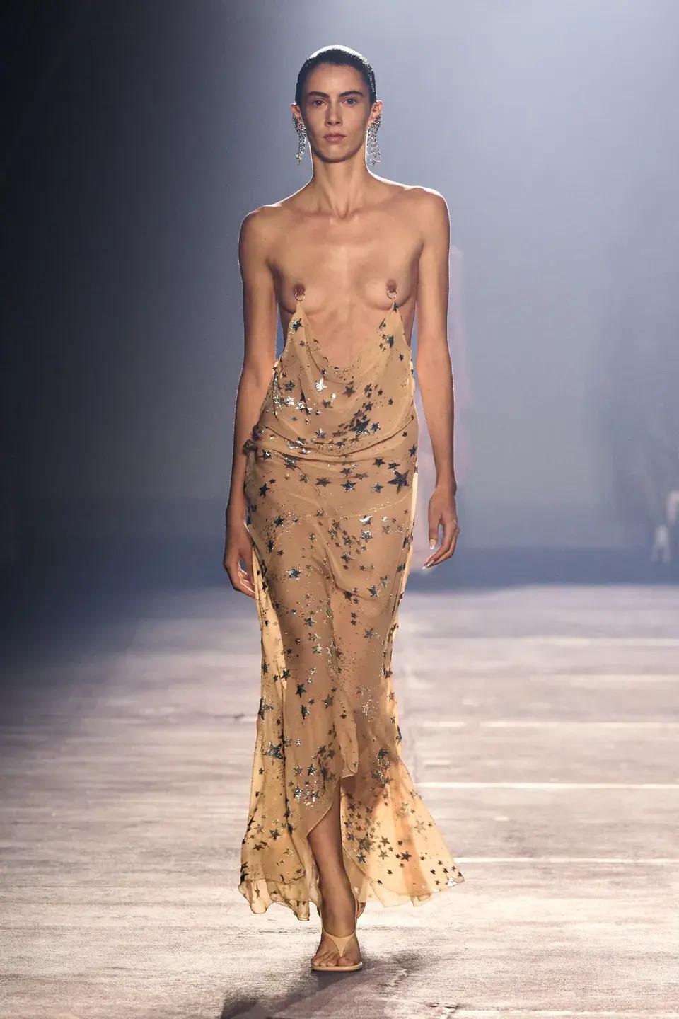 Образ стал интерпретацией выхода из весенней коллекции Mugler 2026 года — первой для нового креативного директора марки Мигеля Кастро Фрейтаса. А изначальным источником инспирации послужили культовые платья с пирсингом из кутюрной коллекции Manfred Thierry Mugler весна-лето 1998 — радикальный жест своего времени. Тогда это действительно было высказывание!