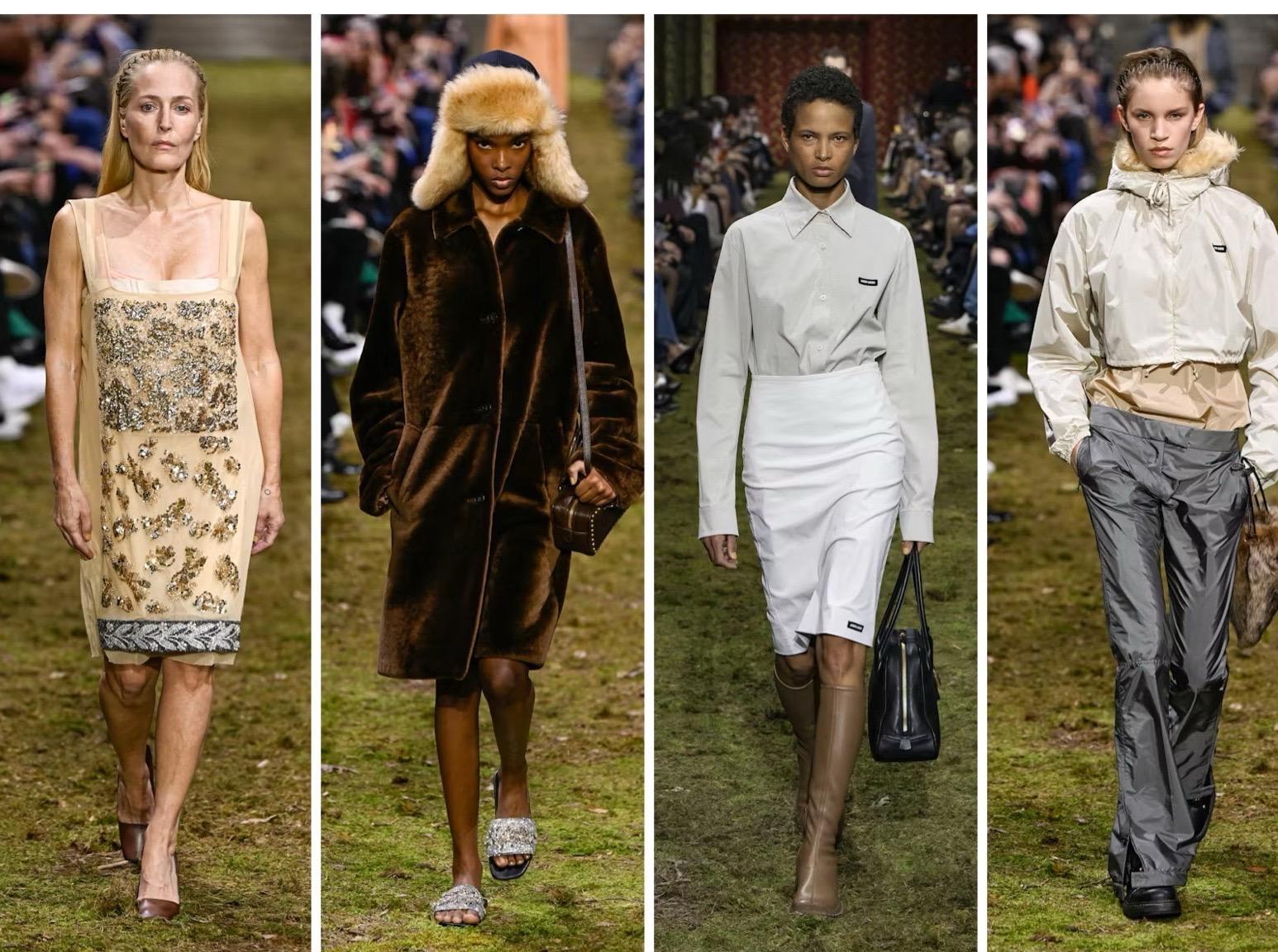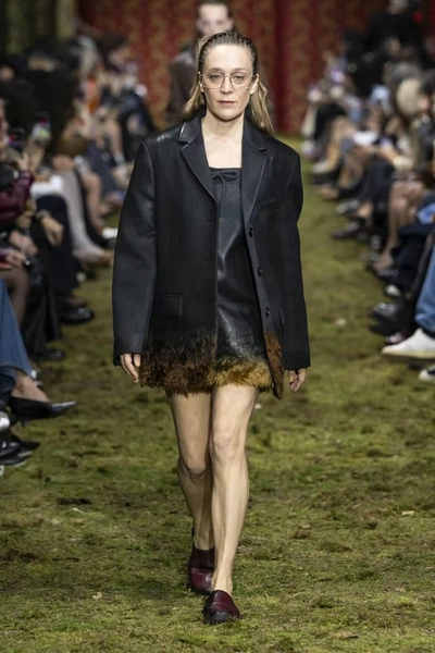 Шоу Miu Miu традиционно — это финальный занавес не только Недели моды в Париже, но и всего марафона показов осень-зима 2026. Невольно цепляешь за «знаки». В первый день Парижа, на шоу Dior, светило ослепительное солнце и внезапно пришла весна — и продолжение этого цветочного и жизнерадостного настроения мы увидели на подиуме. В заключительный день Парижа, прям перед шоу Miu Miu, облака внезапно плотно затянули голубое небо, стало очень холодно и пошел дождь, которого до этого не было в прогнозе на всю неделю. Метео-фон и в данном случае оказался пророчеством. Тучи сгущаются над нашим будущим и нам ждет крайне суровая зима — такой прогноз от одного из самых «молодых», по духу, брендов звучит по-настоящему тревожно.